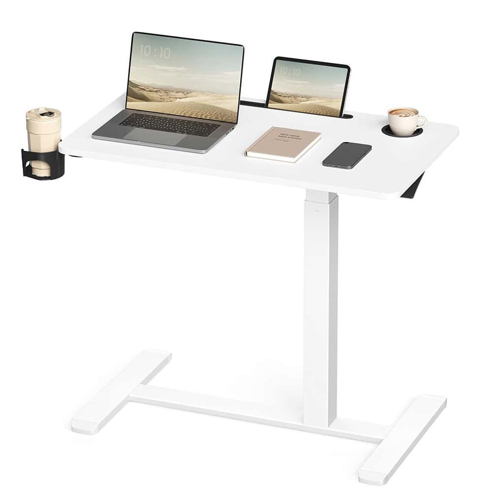 VASAGLE Masa tip birou, ajustabila cu roti pentru pat sau canapea, blat 80×45 cm, inaltime reglabila 65-102 cm, alb Mob360