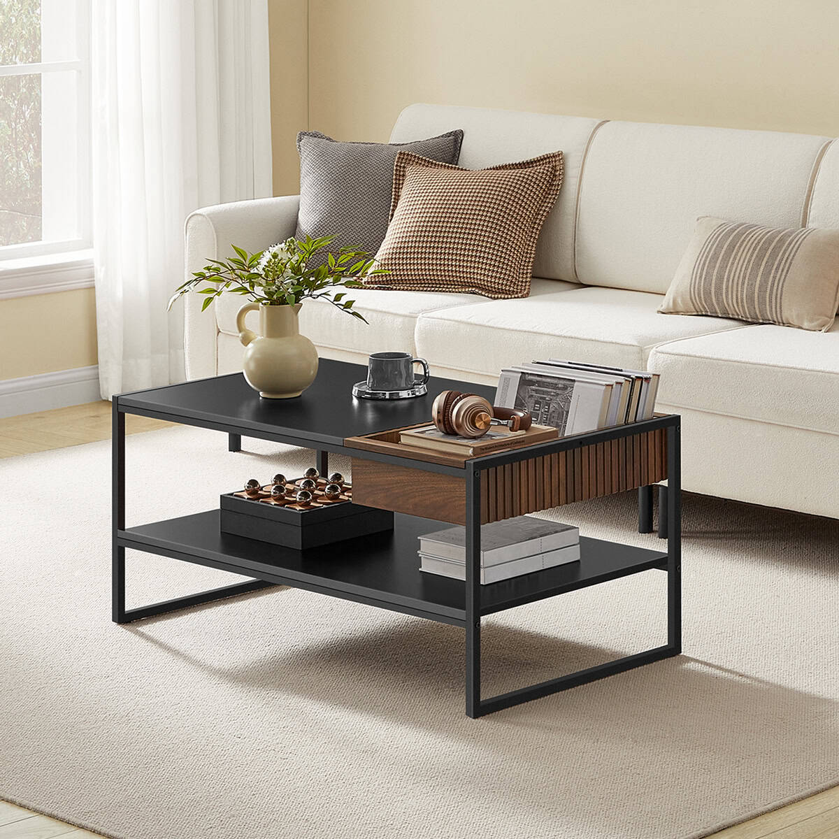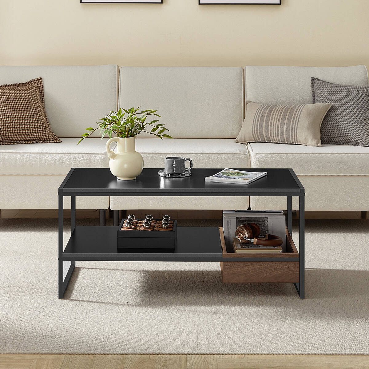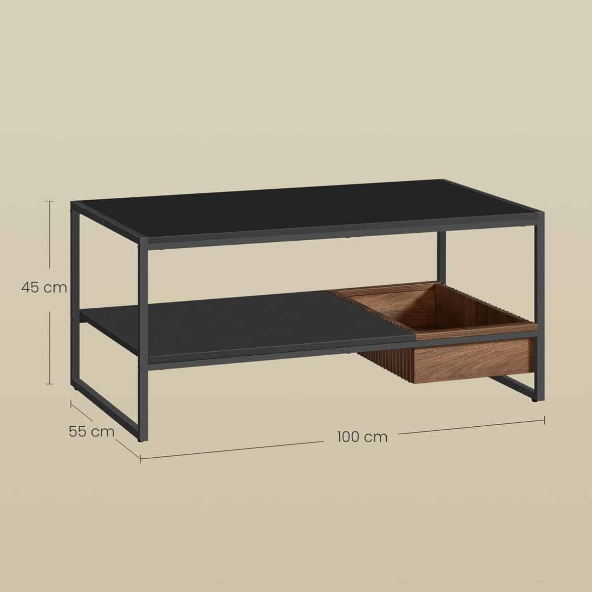 VASAGLE Masuta cafea cu sertar si raft inferior, structura otel, 100x55x45 cm, negru Mob360