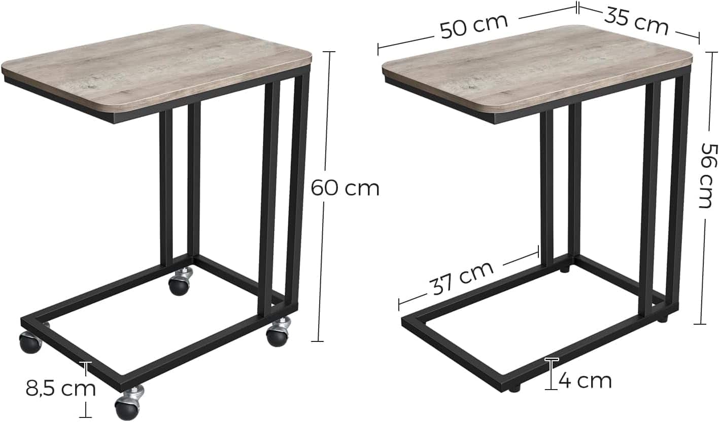 VASAGLE Masuta cafea laterala cu roti detasabile, blat PAL si cadru metalic, 35x50x60 cm, stejar gri Mob360