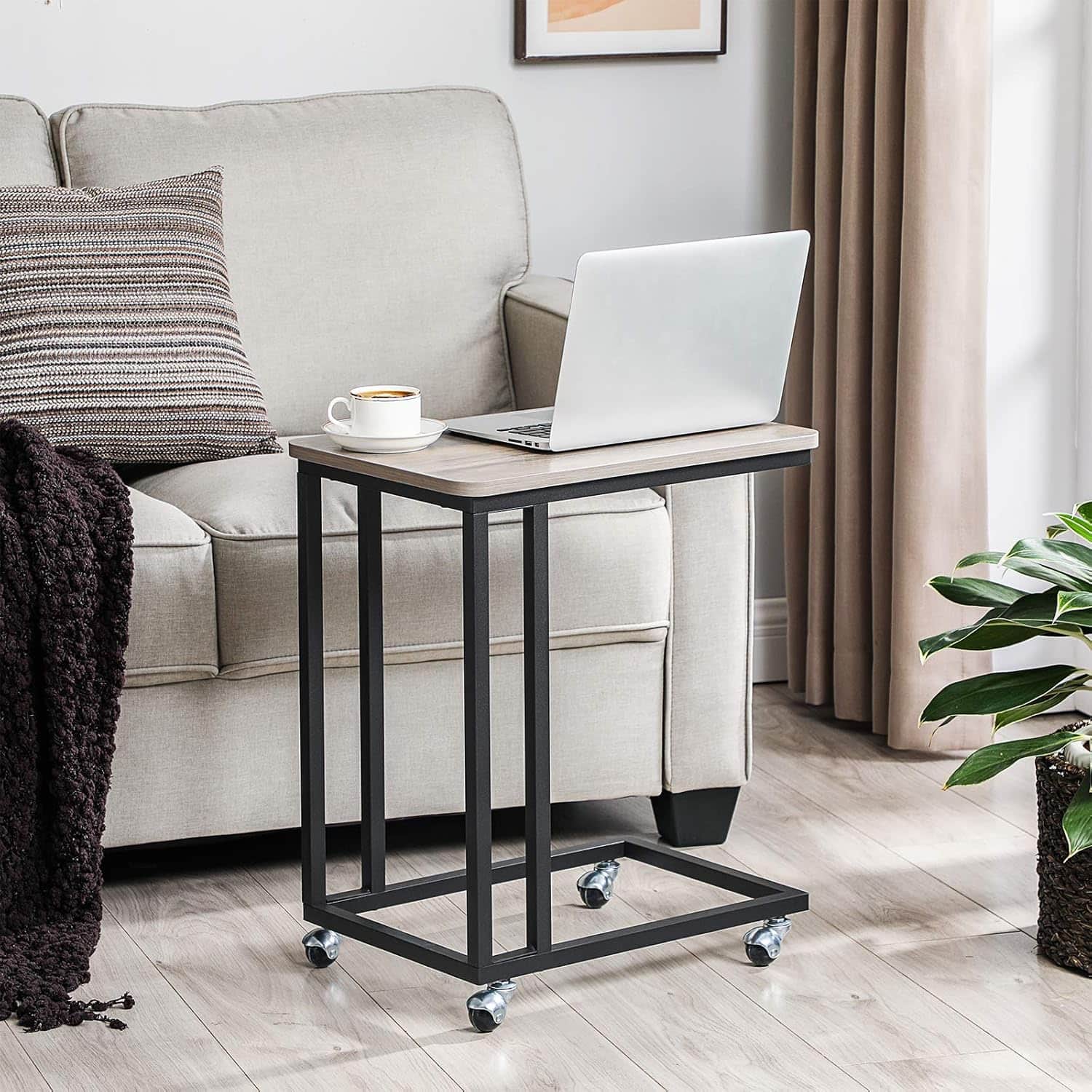 VASAGLE Masuta cafea laterala cu roti detasabile, blat PAL si cadru metalic, 35x50x60 cm, stejar gri Mob360 – produs disponibil în magazinul Mob360.