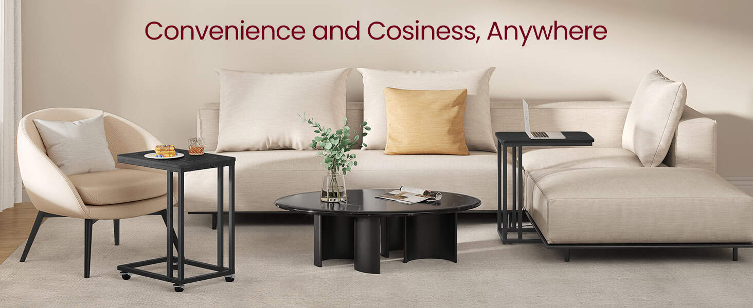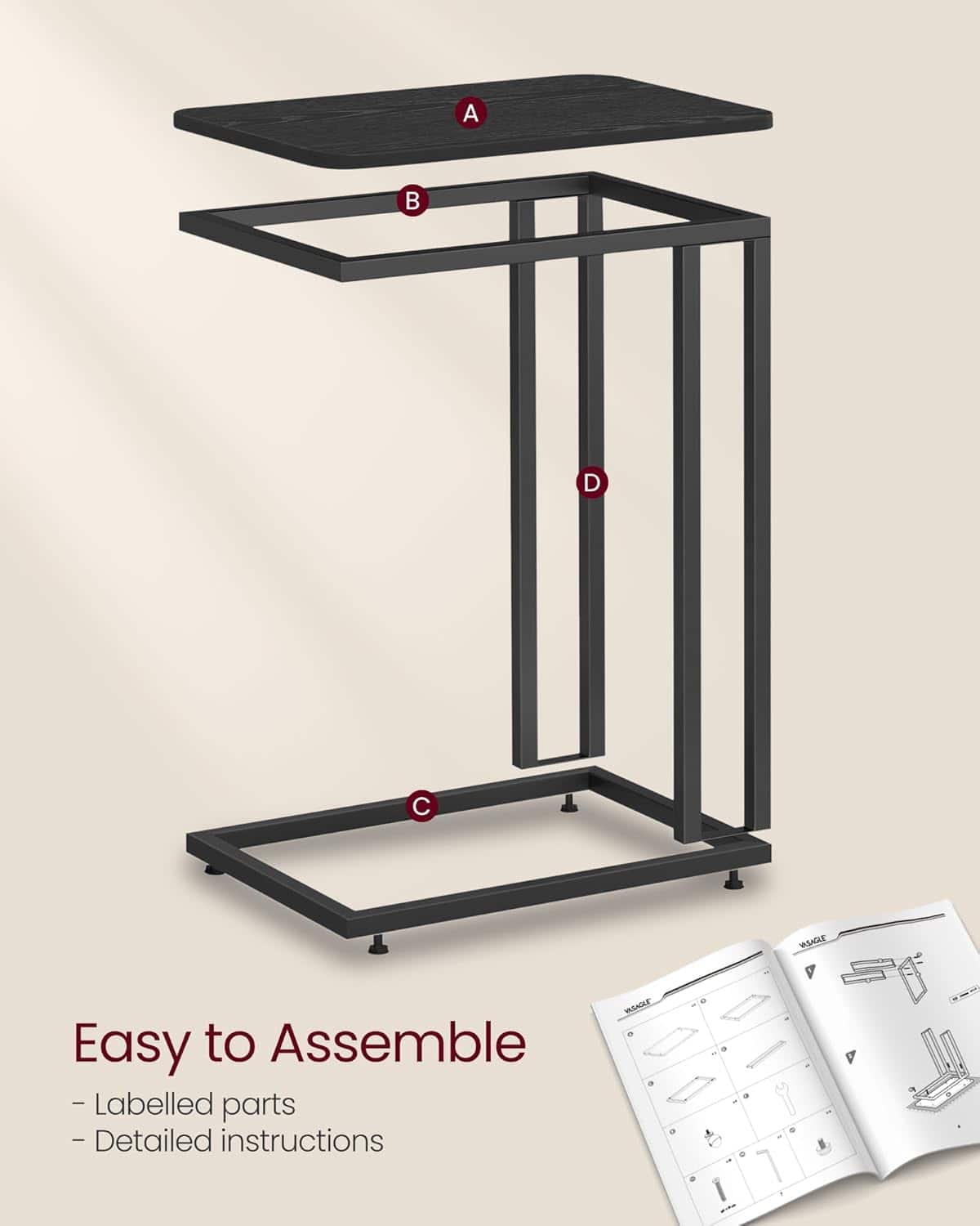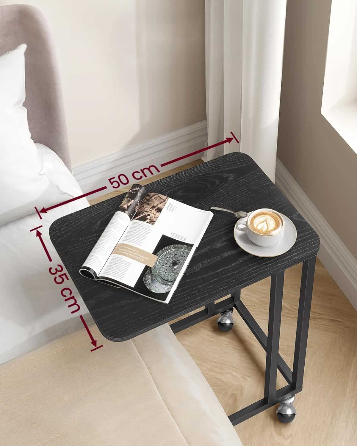 VASAGLE Masuta de cafea, cu cadru de otel si roti, stil industrial, 35x50x60 cm, negru Mob360