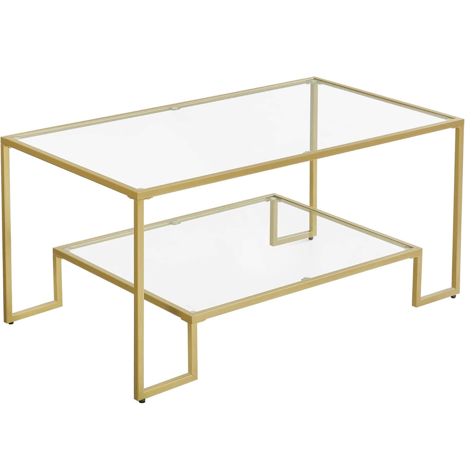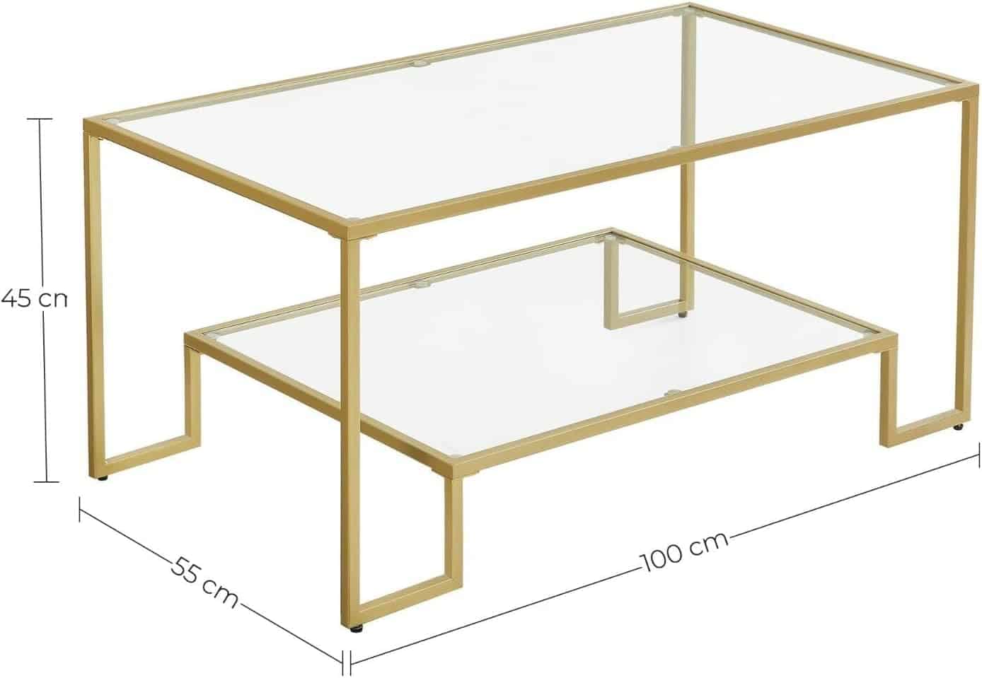 VASAGLE Masuta de cafea cu cadru din otel, suprafata din sticla calita, 100x55x45cm, auriu Mob360