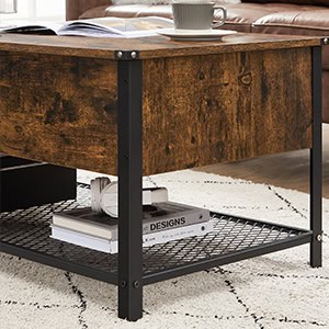 VASAGLE Masuta de cafea cu capac rabatabil, compartiment depozitare ascuns si raft plasa, industrial, 100x55x47cm, maro rustic si negru Mob360 – produs disponibil în magazinul Mob360.