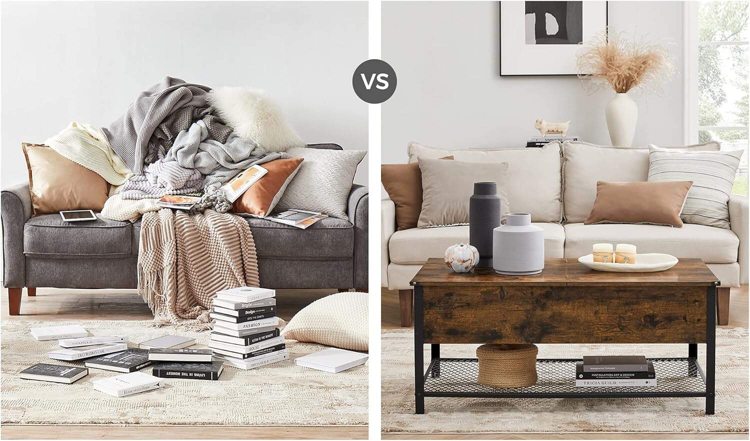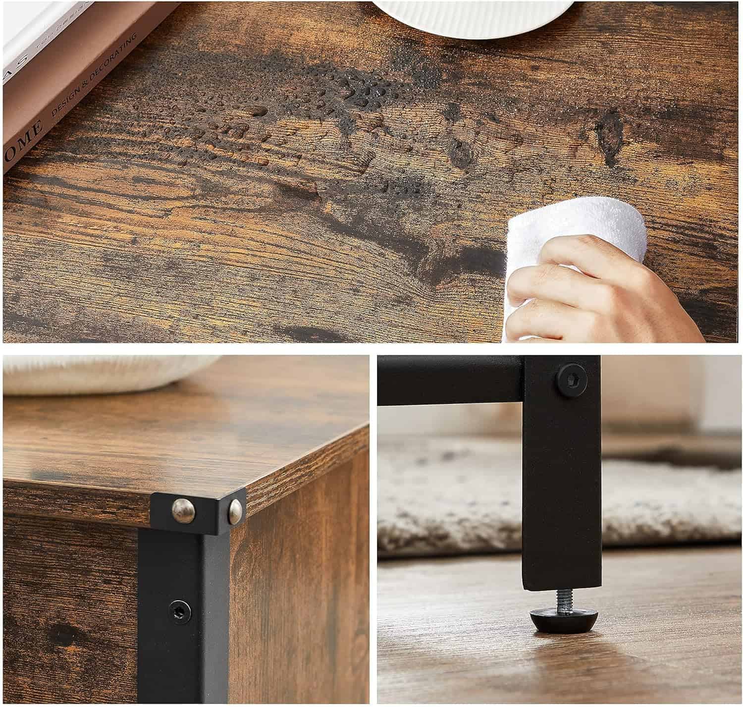Dimensiunile produsului: 100D x 55W x 47H cm Culoare: Maro Marca: VASAGLE Despre acest articol Spatiu pentru afisare, ascundere si organizare: bauturi si gustari pe raftul mare de sus; paturi, perne, jocuri de societate in compartimentul inchis; E loc pentru orice pe aceasta masuta de cafea. Blatul de masa face diferenta: Acest blat de masa mare de 100 x 55 cm ofera mai mult! Este, de asemenea, un capac cu partea rabatabila cu 1 cm mai lunga decat partea fixa, astfel incat poate fi ridicat sau coborat cu usurinta. Un membru al familiei tale: aceasta masuta de cafea va fi un partener de incredere in camera ta de zi pentru a servi timpul petrecut cu familia ta, datorita otelului robust, placilor solide si picioarelor reglabile; rezistand testului timpului, in curand va fi unul dintre voi!Spatiul mare te face multumit, dar aspectul fermecator al stilului vintage asortat de raftul din plasa te impresioneaza, este masuta de cafea, atat tu, cat si oaspetii tai sunteti predispusi la „WOW-uri”. Ce primesti: o masuta de cafea vintage cu un blat spatios si un compartiment ascuns, piese numerotate si instructiuni usor de urmat pentru asamblare cu usurinta, iti aduc fericire chiar de la inceput.