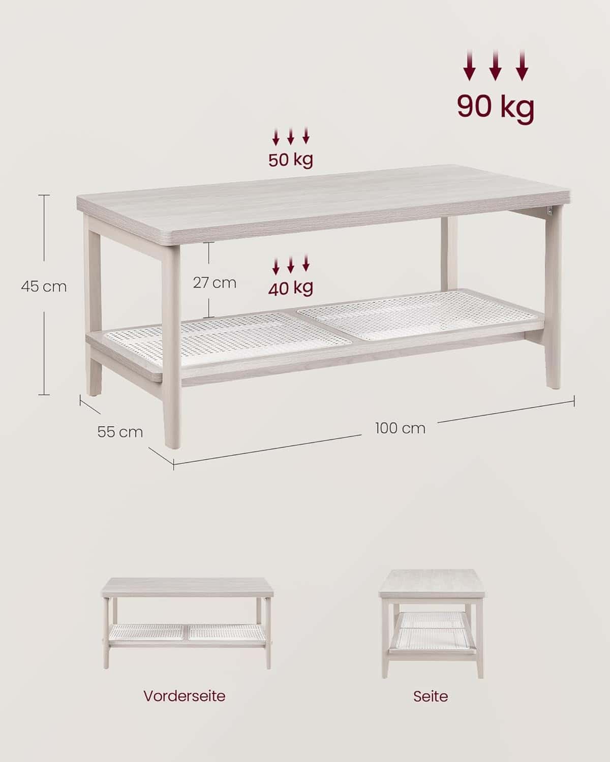 VASAGLE Masuta de cafea, din MDF, cu spatiu de depozitare pe 2 nivele, 55x100x45 cm, stil boho, bej Mob360