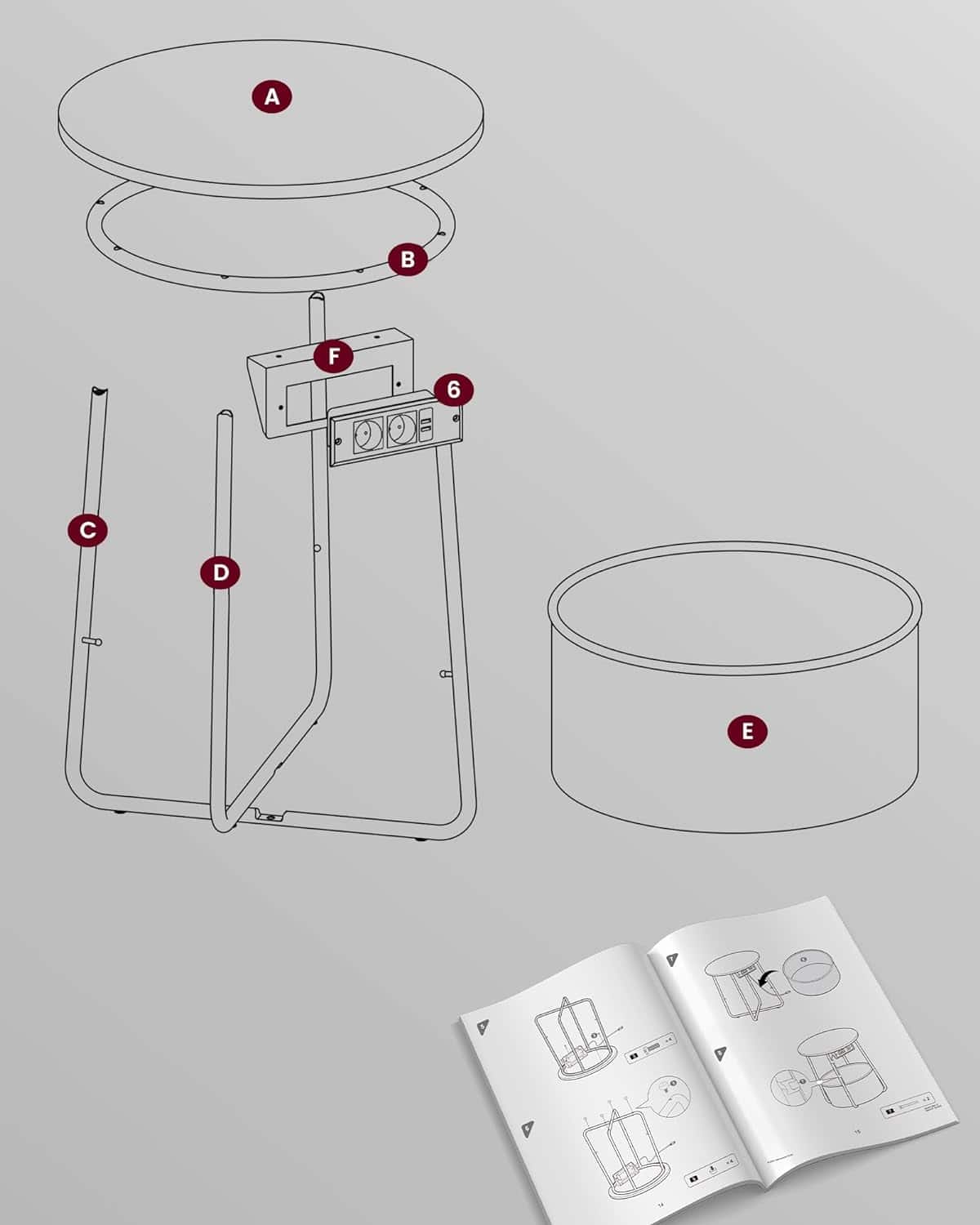 Detalii despre produs: Culoare: Negru-gri argintiu Material: placi aglomerate, otel, tesatura din poliester Dimensiunea mesei laterale: 45 x 50 cm (Ø x H) Dimensiunea cosului din tesatura: 39,6 x 18,2 cm (Ø x H) Greutate totala: 4,4 kg Capacitatea maxima de incarcare statica a blatului mesei: 35 kg Despre acest articol Rapid si usor de asamblat: Datorita structurii simple si instructiunilor clare, aceasta masa laterala poate fi asamblata in 5-10 minute. Se potriveste spatiilor mici: Masa de 45 x 50 cm (Dia. x H) cu cos de 39,6 x 18,2 cm (Dia. x H) se potriveste in spatii mici. Ca o noptiera in camera de zi sau ca o noptiera in dormitor, nu este voluminoasa, dar ofera o multime de spatiu de depozitare pentru articolele tale. Solid si stabil: Blatul solid din PAL este fixat pe cadru fara clatinare. Picioarele dintr-o bucata din otel in forma de U ofera un suport stabil. Picioarele reglabile maresc stabilitatea si nu zgarie podeaua. Cos de calitate: Cosul din tesatura de poliester cu doua straturi, fara cute, este placut ochiului si nu contine substante chimice pentru utilizare in siguranta. Cu un aspect asemanator inului, adauga o nota unica acestei mese mici. Moderna si simpla: Aceasta masuta de cafea rotunda alba simpla cu cos bej va adauga un plus de stil sufrageriei sau dormitorului dvs. si este usor de asortat cu o varietate de stiluri de mobilier.