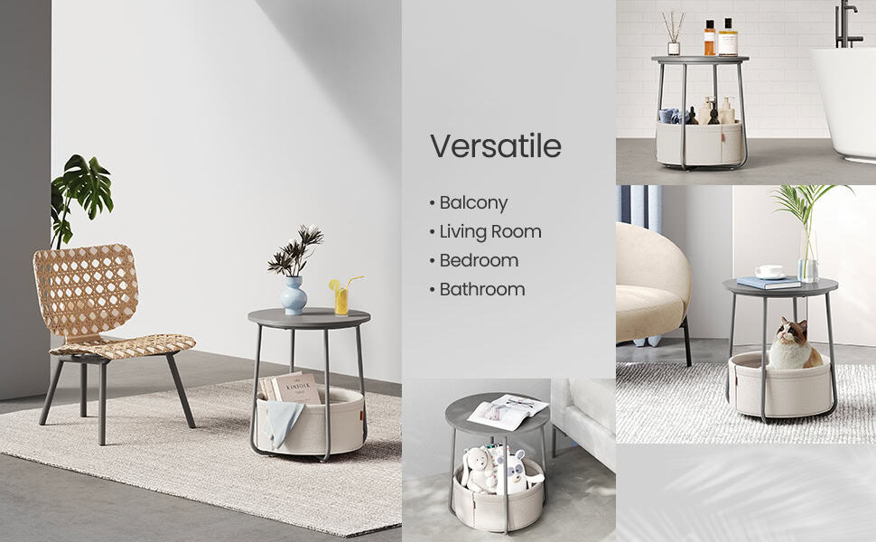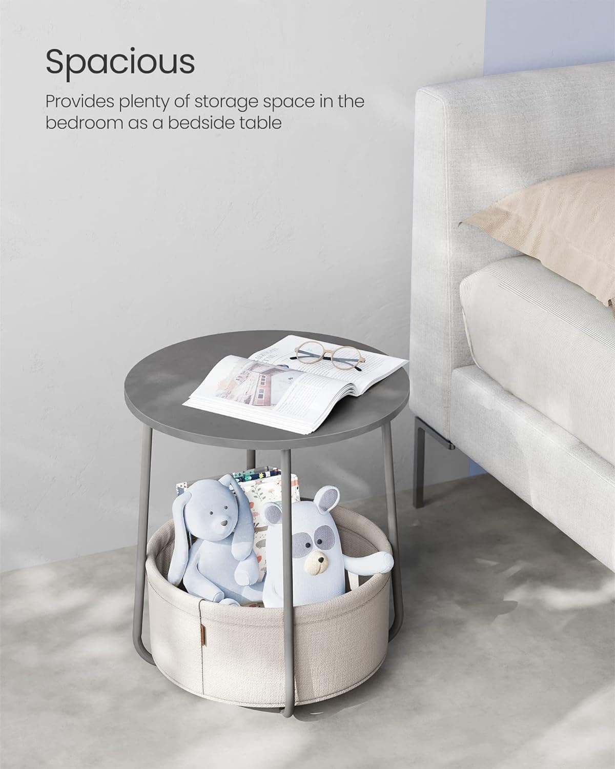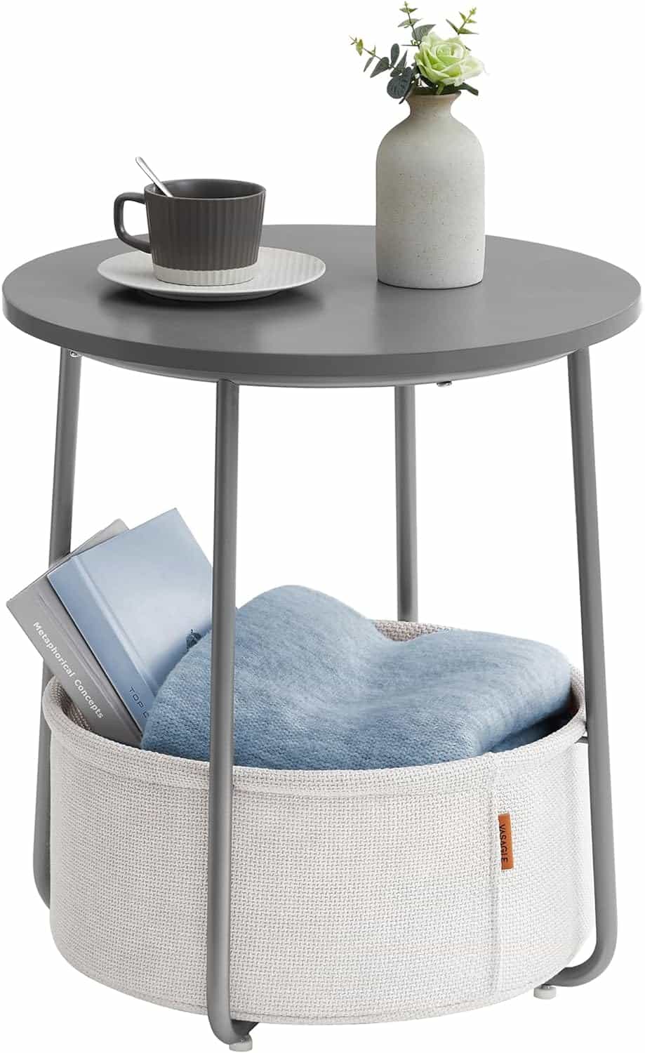 VASAGLE Masuta de cafea rotunda cu cos de stofa, stil modern, 45x50cm, gri Mob360 – produs disponibil în magazinul Mob360.