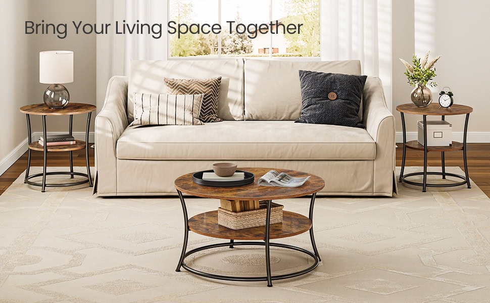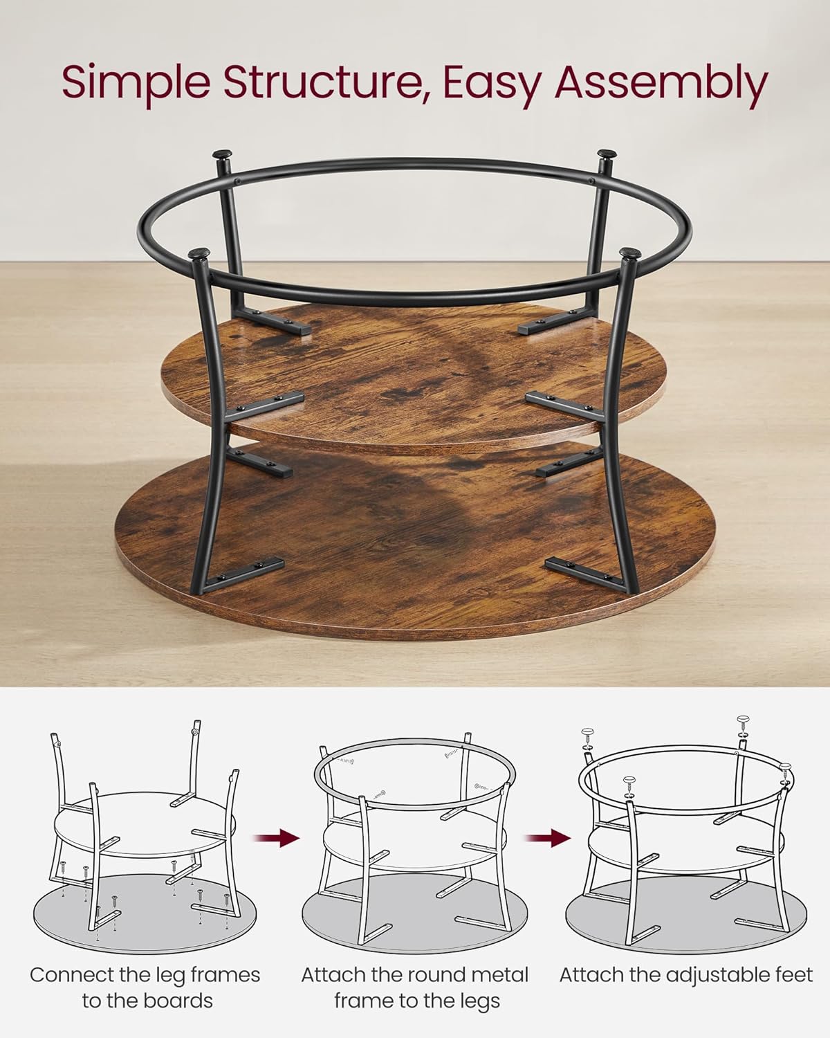 VASAGLE Masuta de cafea rotunda cu raft, cadru metalic, stil industrial, 80×45 cm, maro rustic Mob360