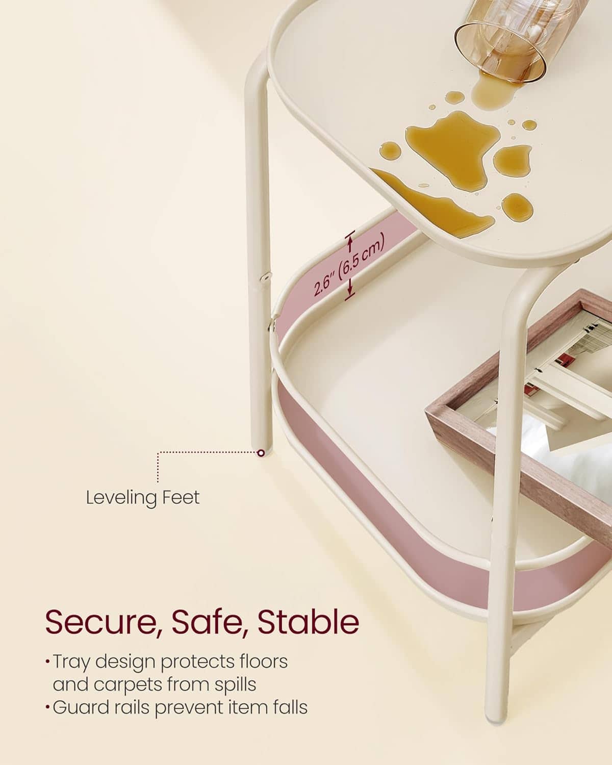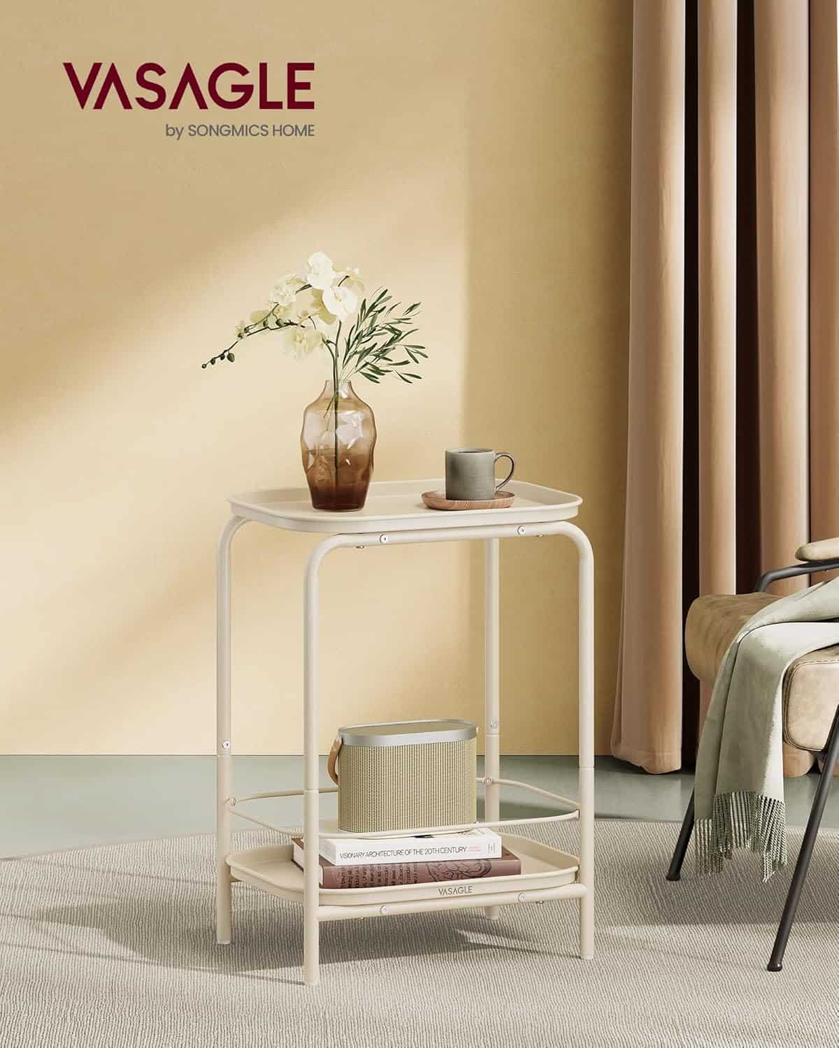 VASAGLE Masuta laterala 40x30x56 cm, cu 2 rafturi, otel rezistent la apa si zgarieturi, crem Mob360 – produs disponibil în magazinul Mob360.