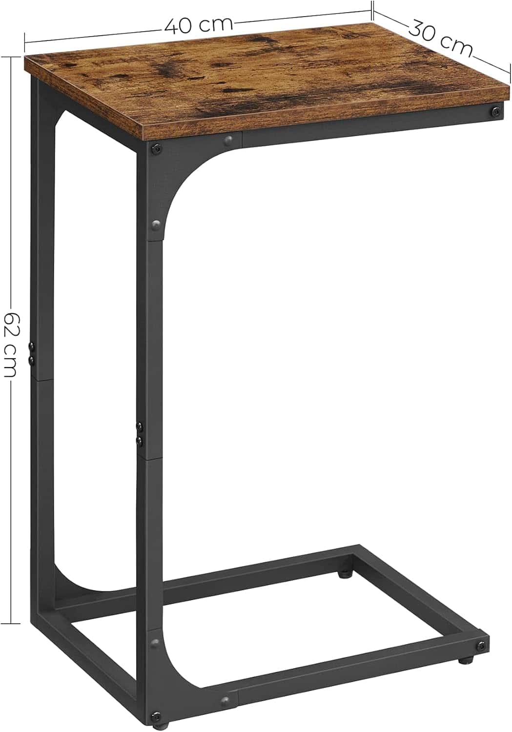 VASAGLE Masuta laterala C-shape pentru canapea sau pat, blat din PAL, cadru metalic, stil industrial, 40x30x62 cm, maro rustic Mob360