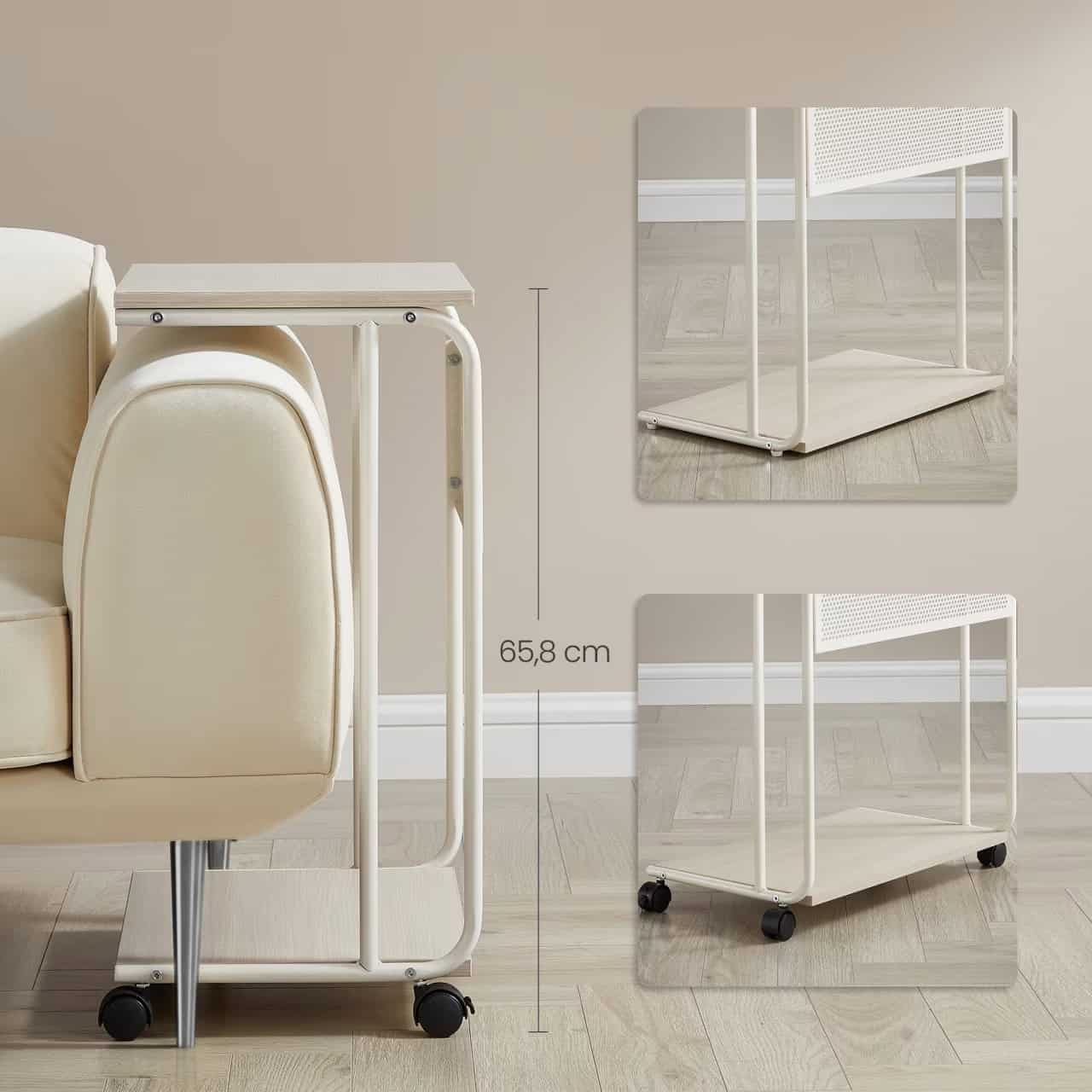 VASAGLE Masuta laterala laptop pe roti, 55x33x66 cm, stil industrial, crem Mob360 – produs disponibil în magazinul Mob360.