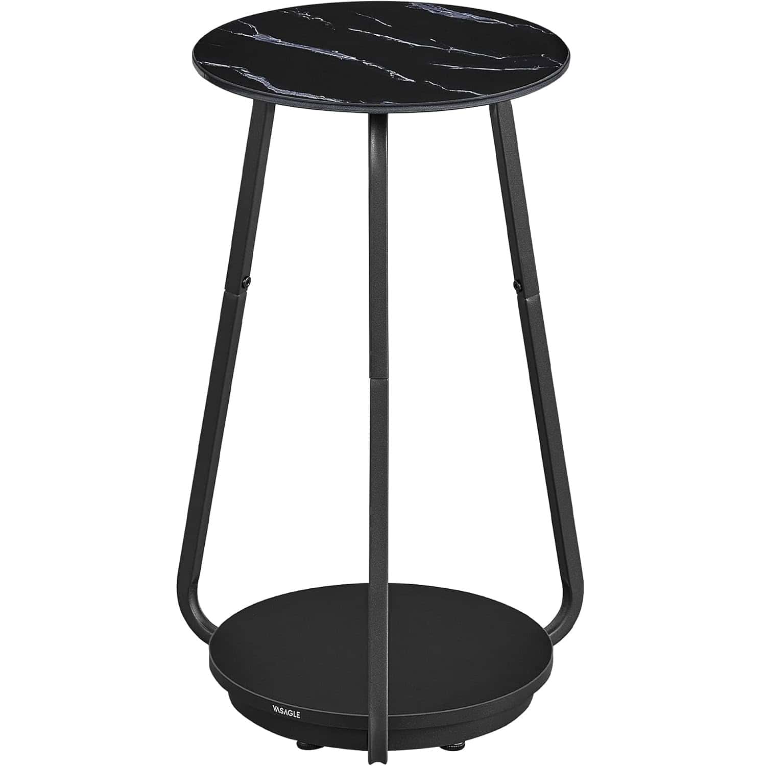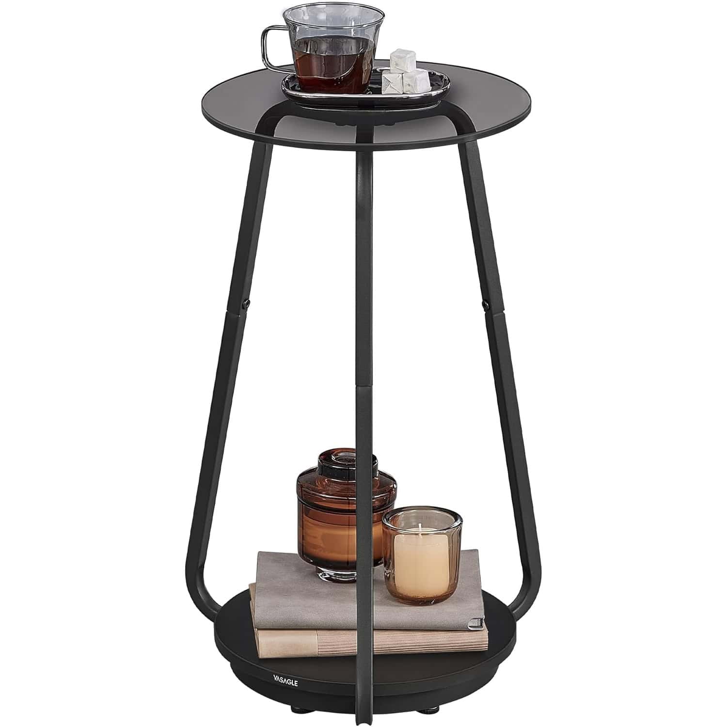 VASAGLE Masuta rotunda tip noptiera, blat din sticla si raft inferior din PAL, cadru metalic, 30x30x55 cm, negru Mob360