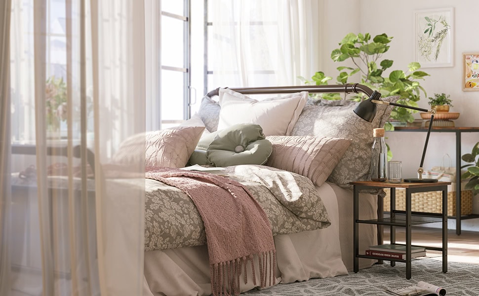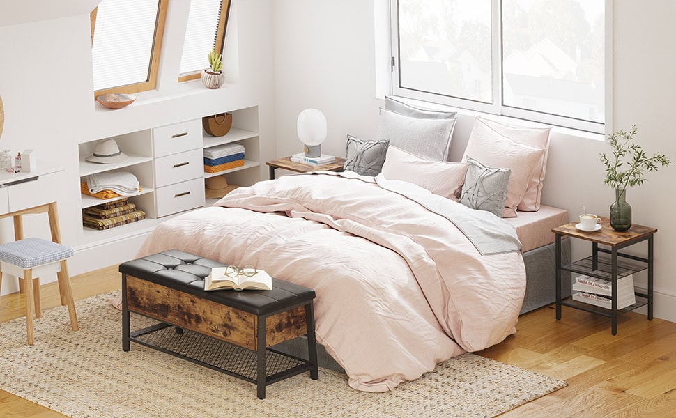 VASAGLE Noptiera cu cadru metalic, blat MDF, rafturi reglabile, 40x40x50cm, maro rustic Mob360