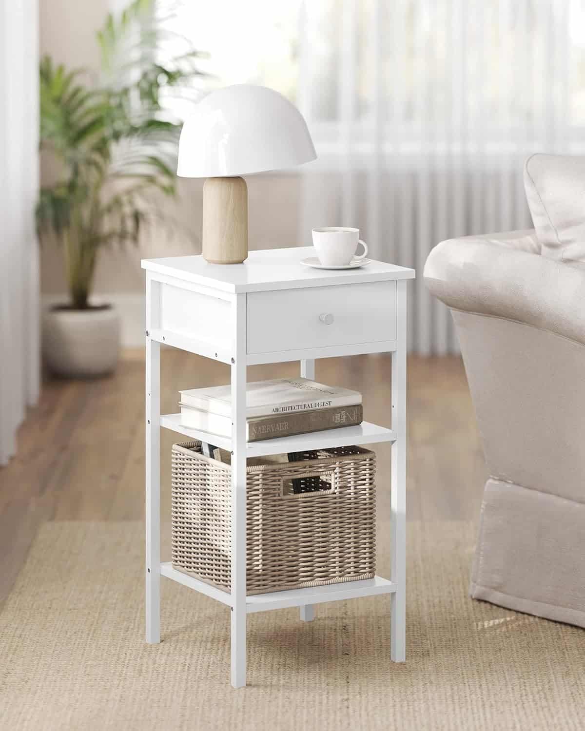 VASAGLE Noptiera cu sertar pentru dormitor, design scandinav, 35x35x70cm, alb Mob360