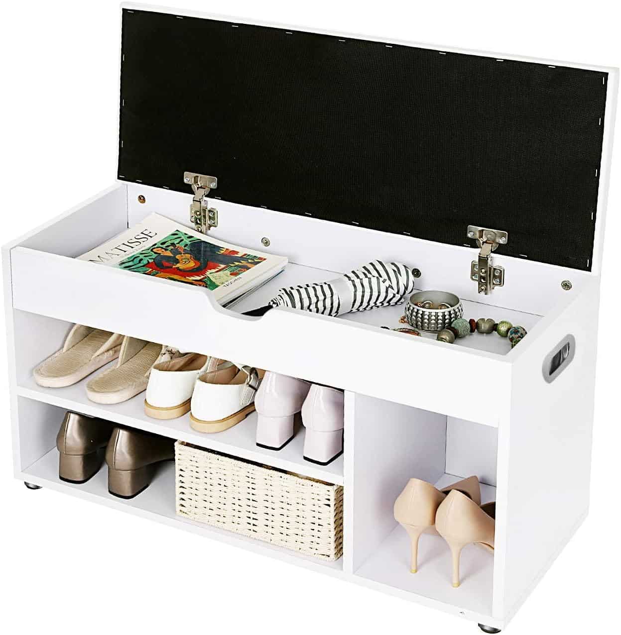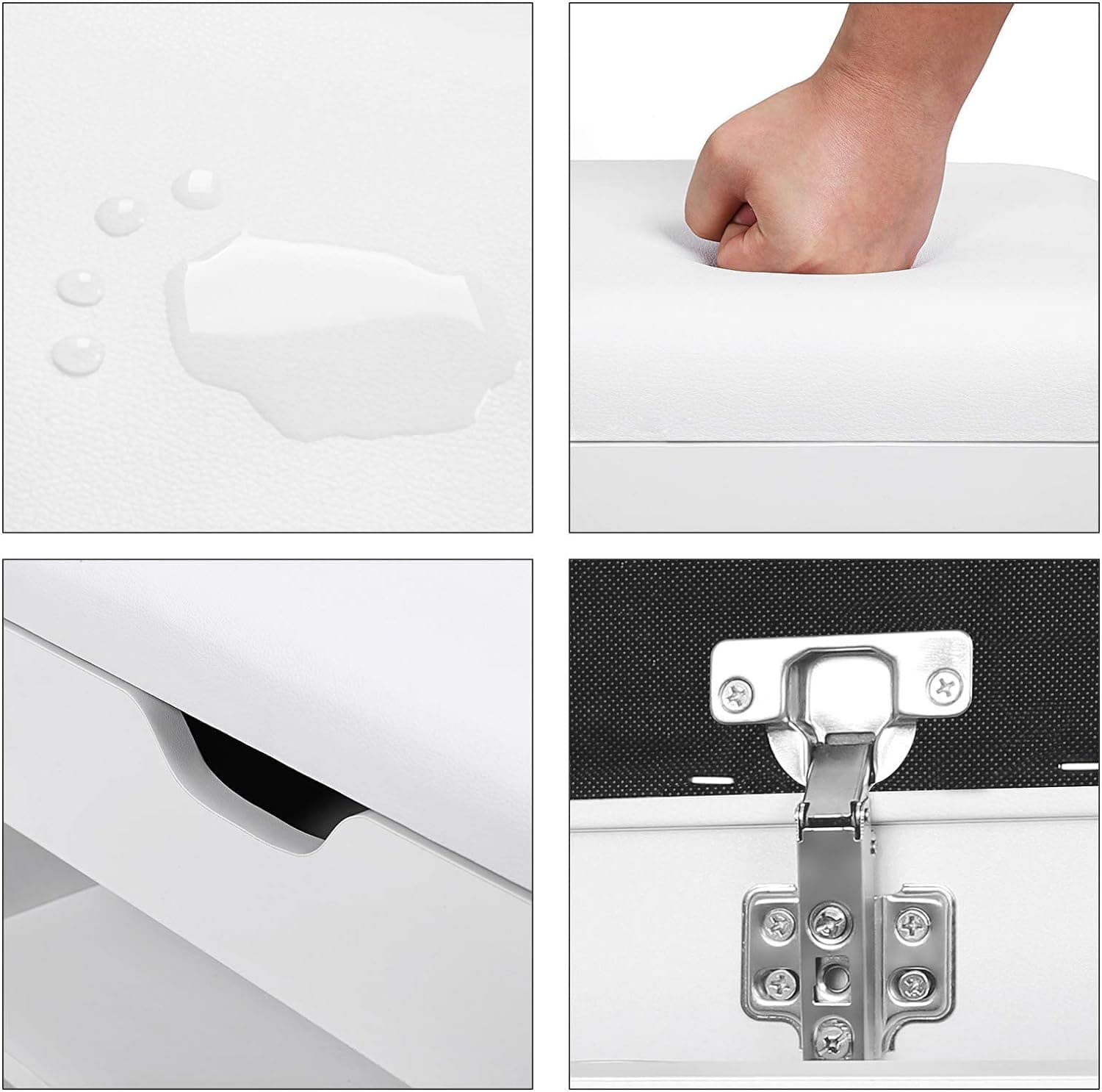 VASAGLE Pantofar cu banca, capitonata, 3 compartimente, sarcina 150 kg, 30x80x44cm, modern, alb Mob360