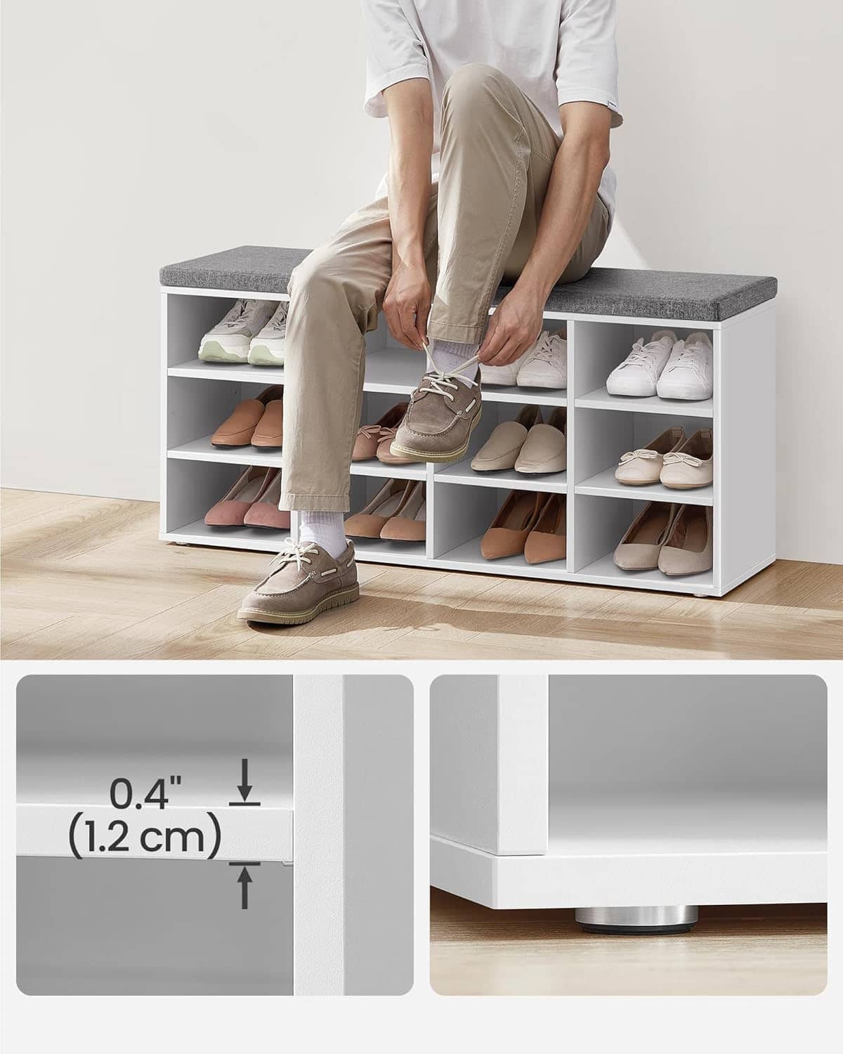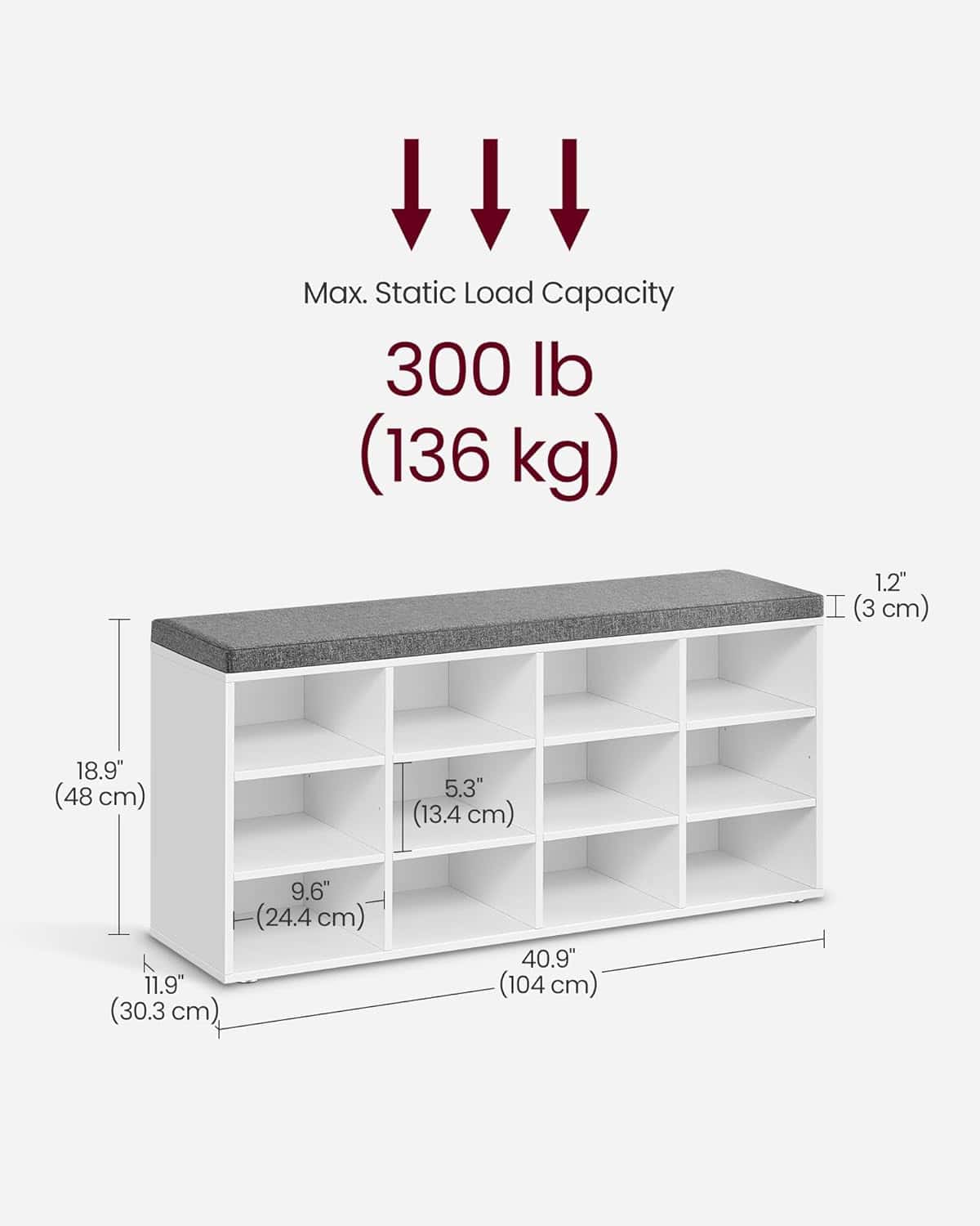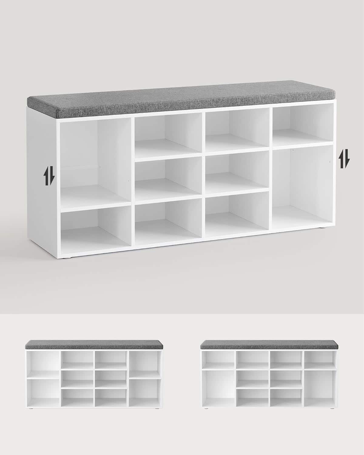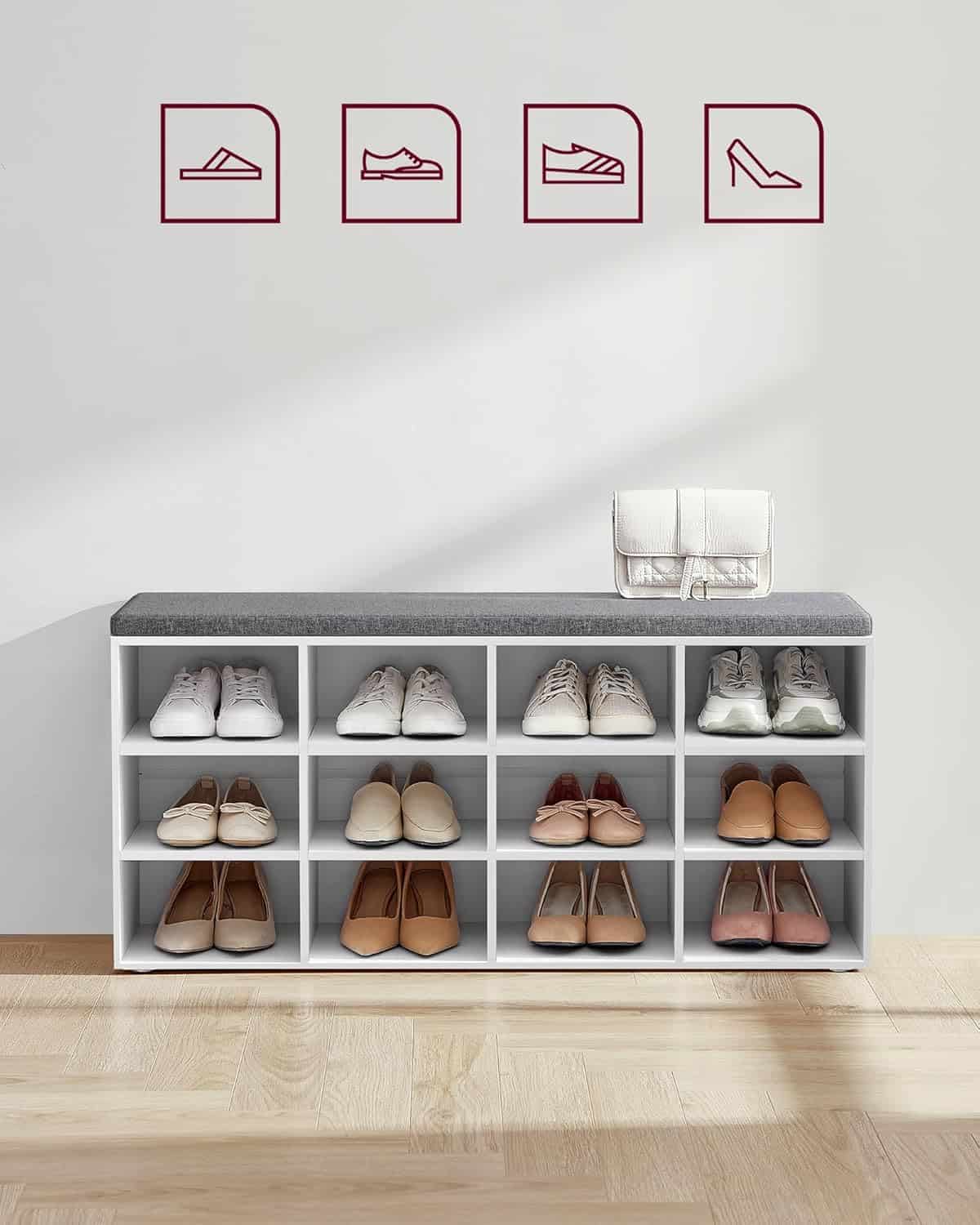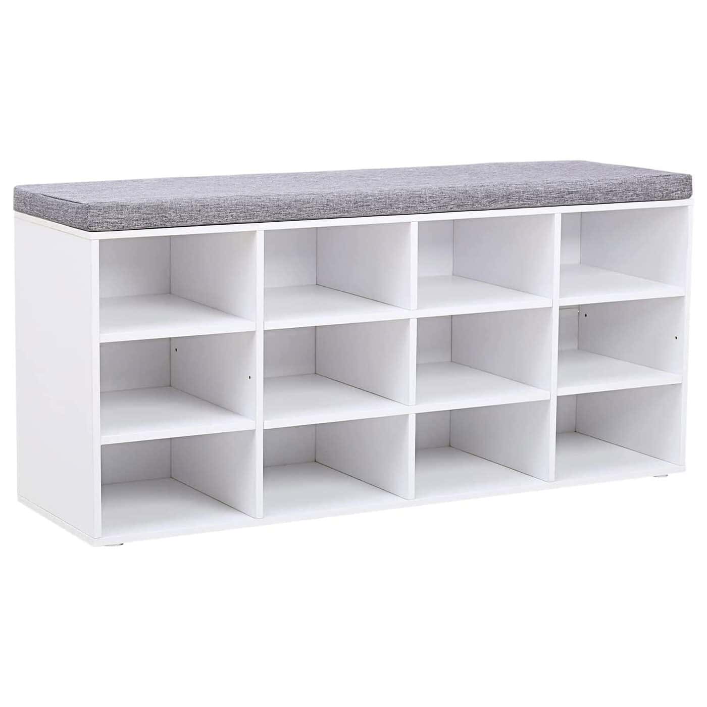 VASAGLE Pantofar cu banca cu 12 compartimente si perna, sarcina 136 kg, 104x30x48 cm, alb Mob360