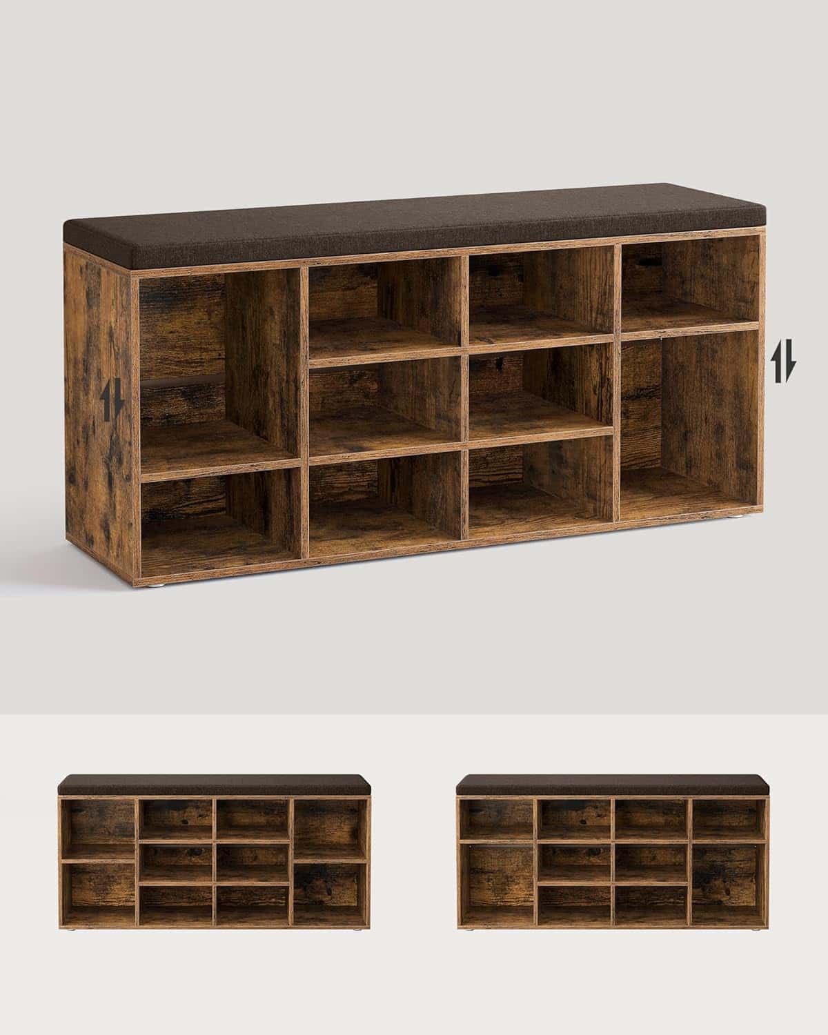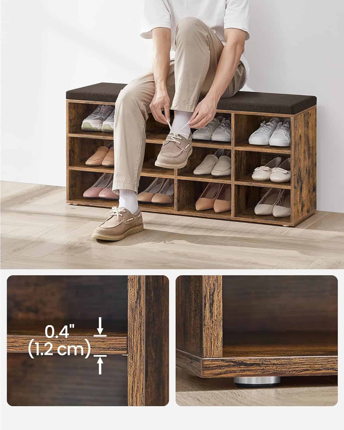 VASAGLE Pantofar cu banca cu 12 compartimente si perna, sarcina 136 kg, 104x30x48 cm, maro rustic Mob360