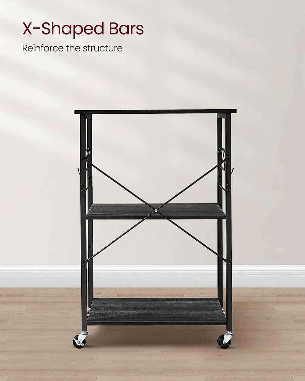 VASAGLE Raft de bucatarie pe roti, carucior de servire cu 3 rafturi, cadru metalic, 40x60x89 cm, design industrial, negru Mob360