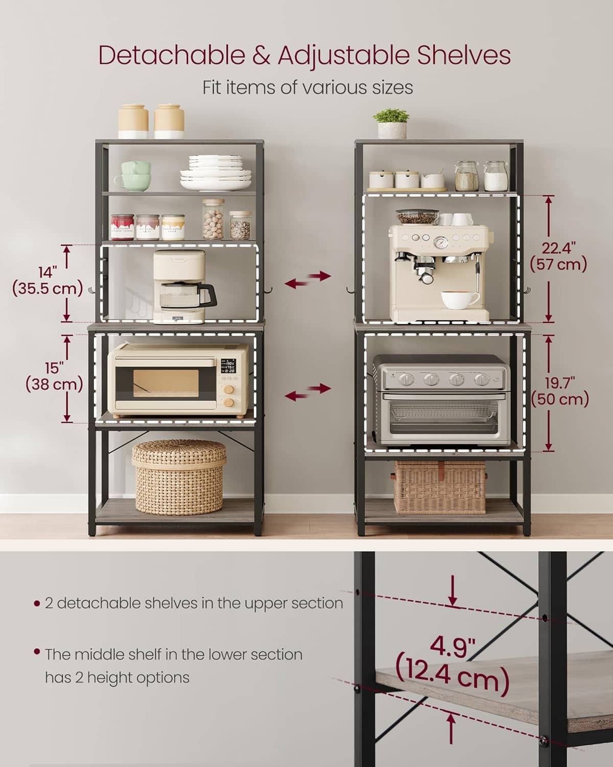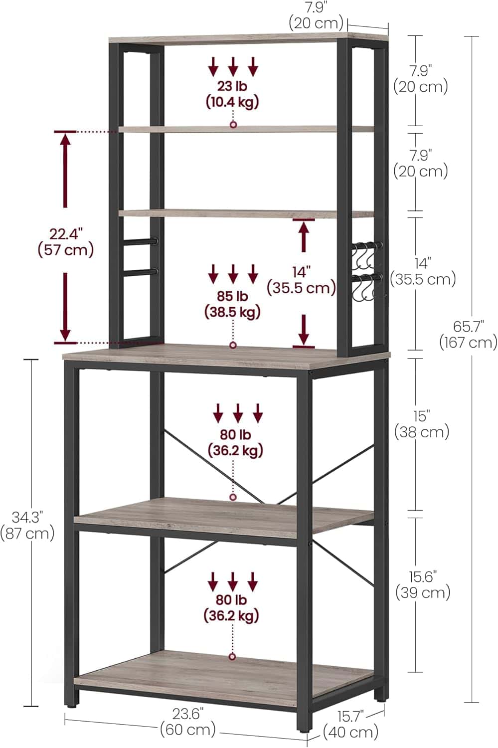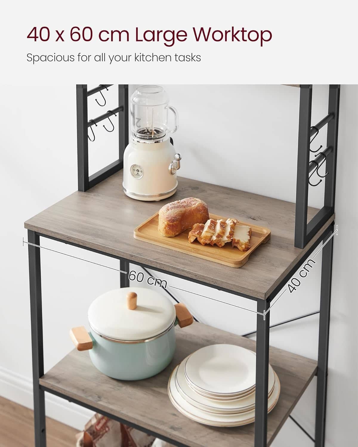 VASAGLE Raft de bucatarie, spatiu cuptor cu microunde, 6 rafturi, 40x60x167cm, gri si negru Mob360