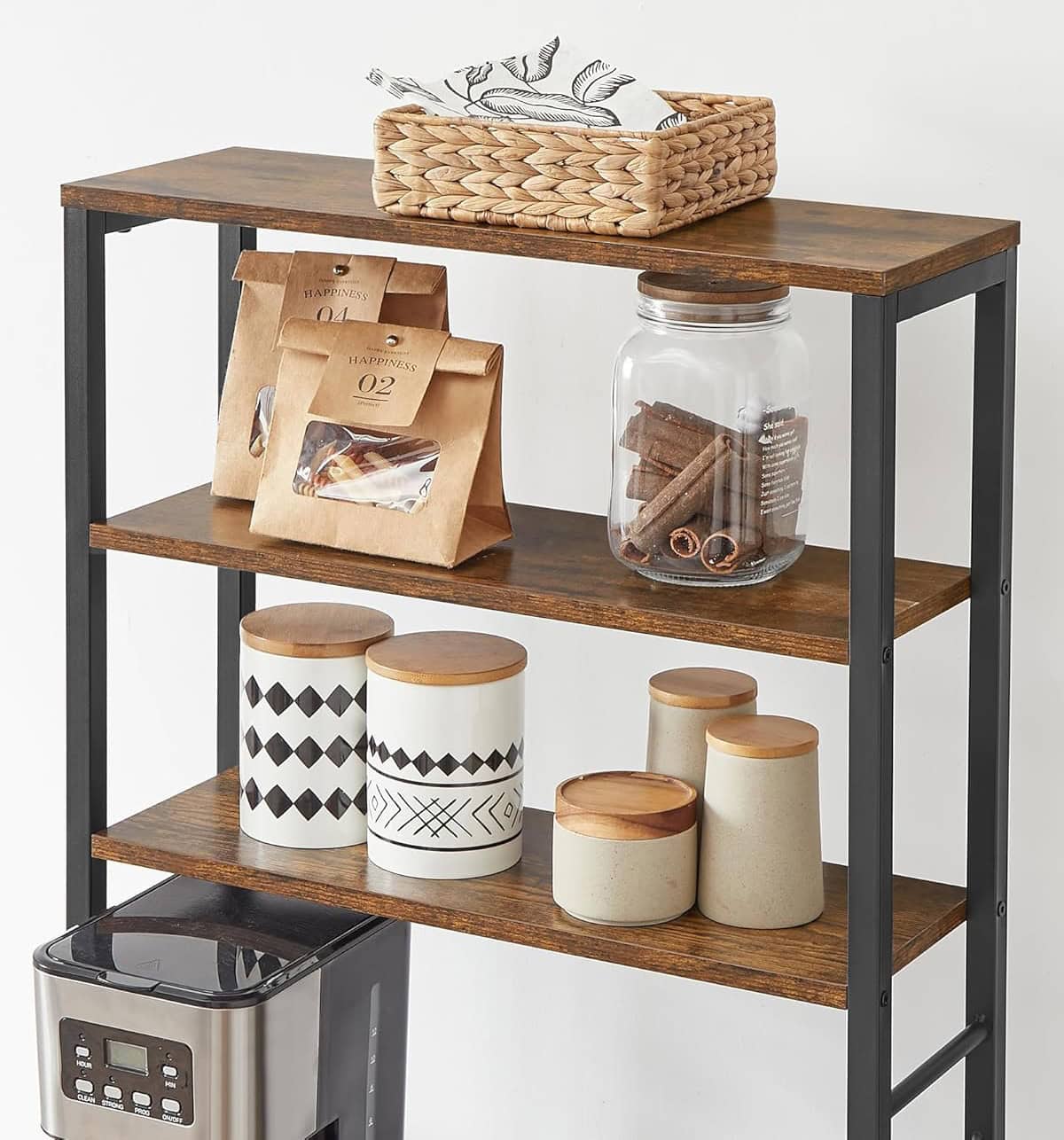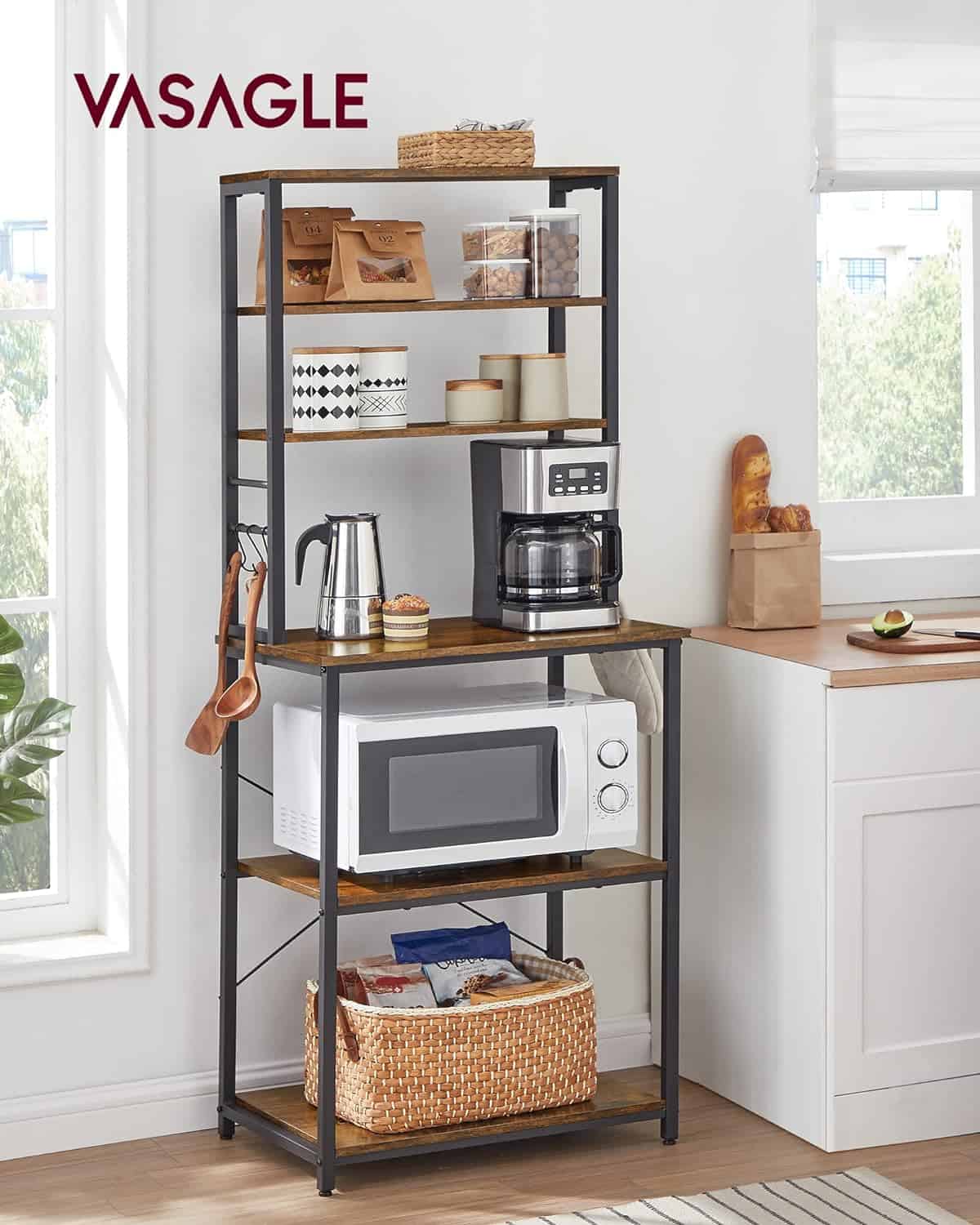 VASAGLE Raft de bucatarie, spatiu cuptor cu microunde, 6 rafturi, 40x60x167cm, maro rustic si negru Mob360 – produs disponibil în magazinul Mob360.