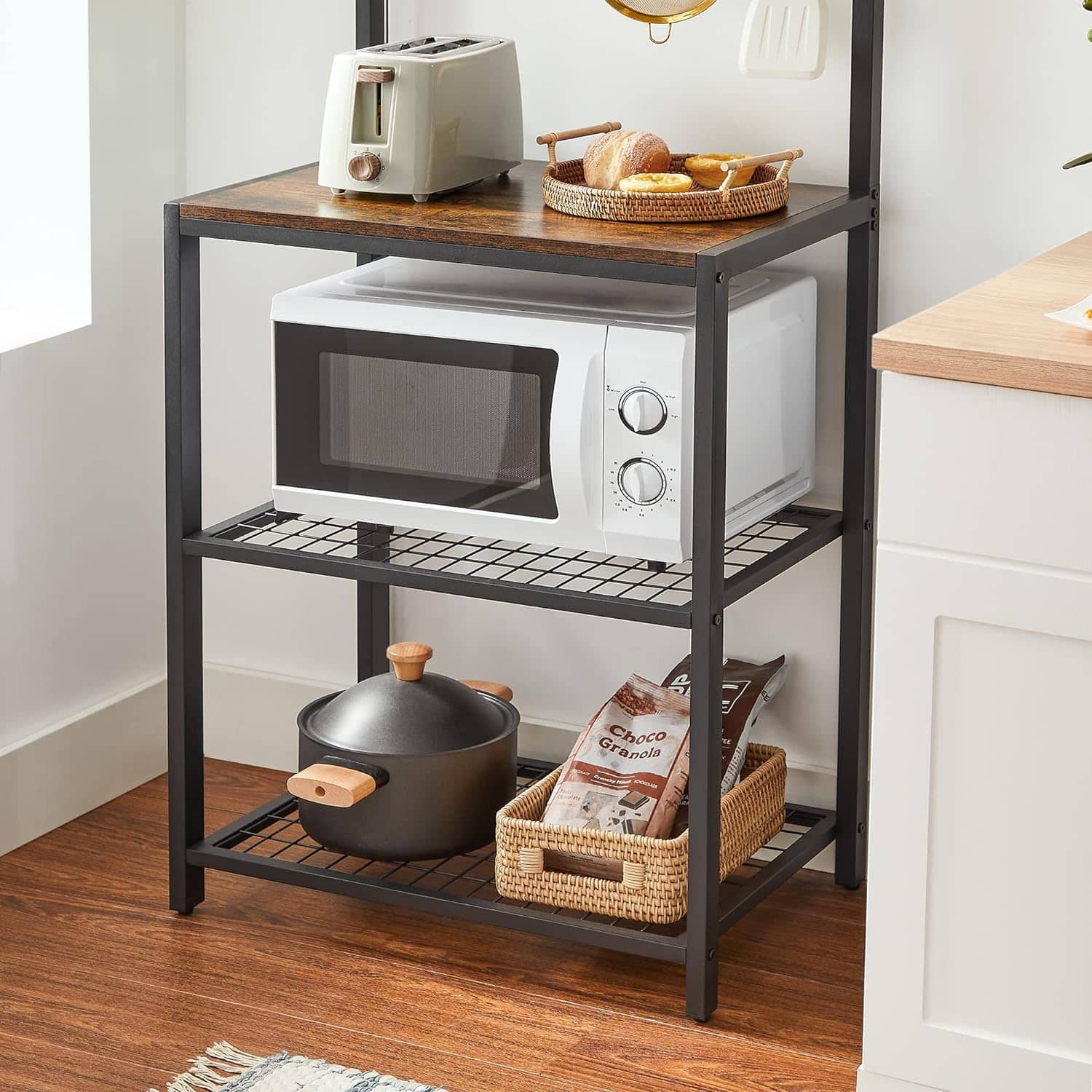 VASAGLE Raft de bucatarie, suport pentru cuptorul cu microunde, cu 3 polite, 60x40x152cm, maro rustic Mob360