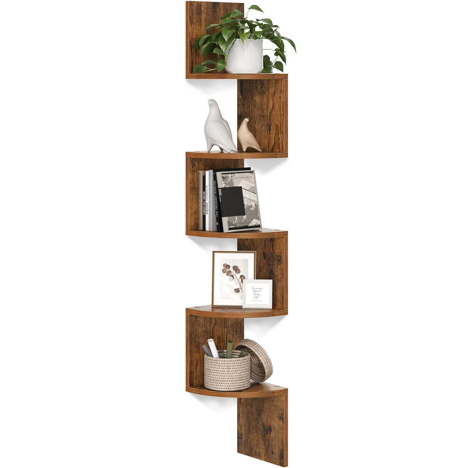 VASAGLE Raft de colt plutitor pe 5 niveluri, din lemn, 20x20x128cm, maro rustic Mob360