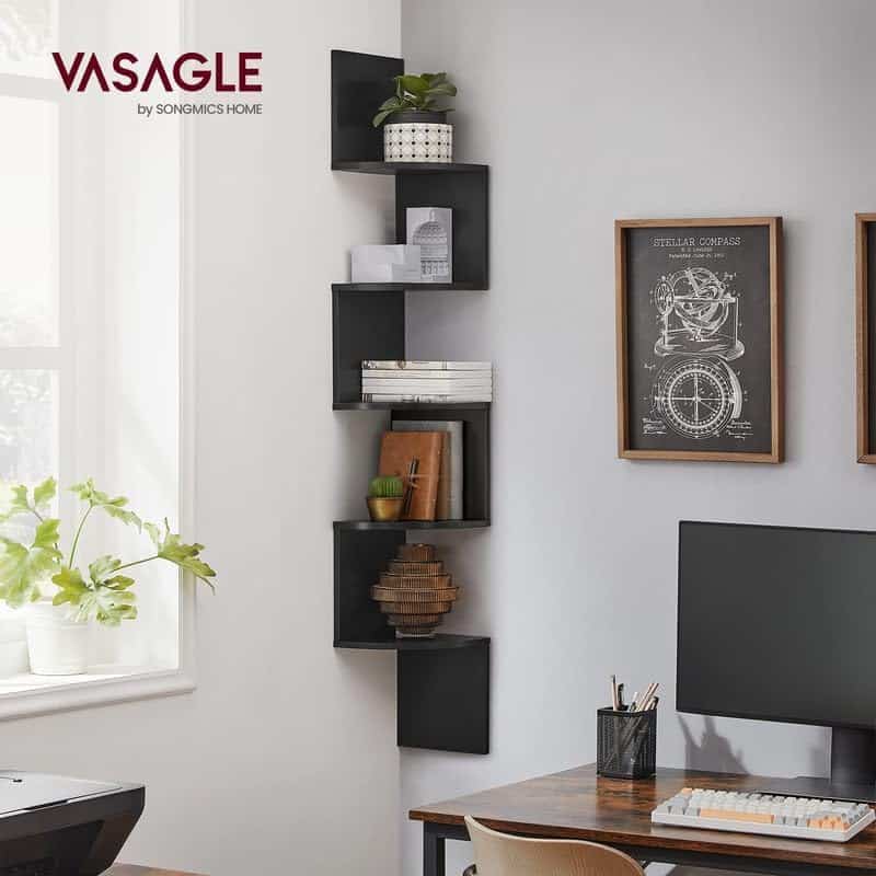 VASAGLE Raft de colt plutitor pe 5 niveluri, din lemn, 20x20x128cm, negru Mob360 – produs disponibil în magazinul Mob360.