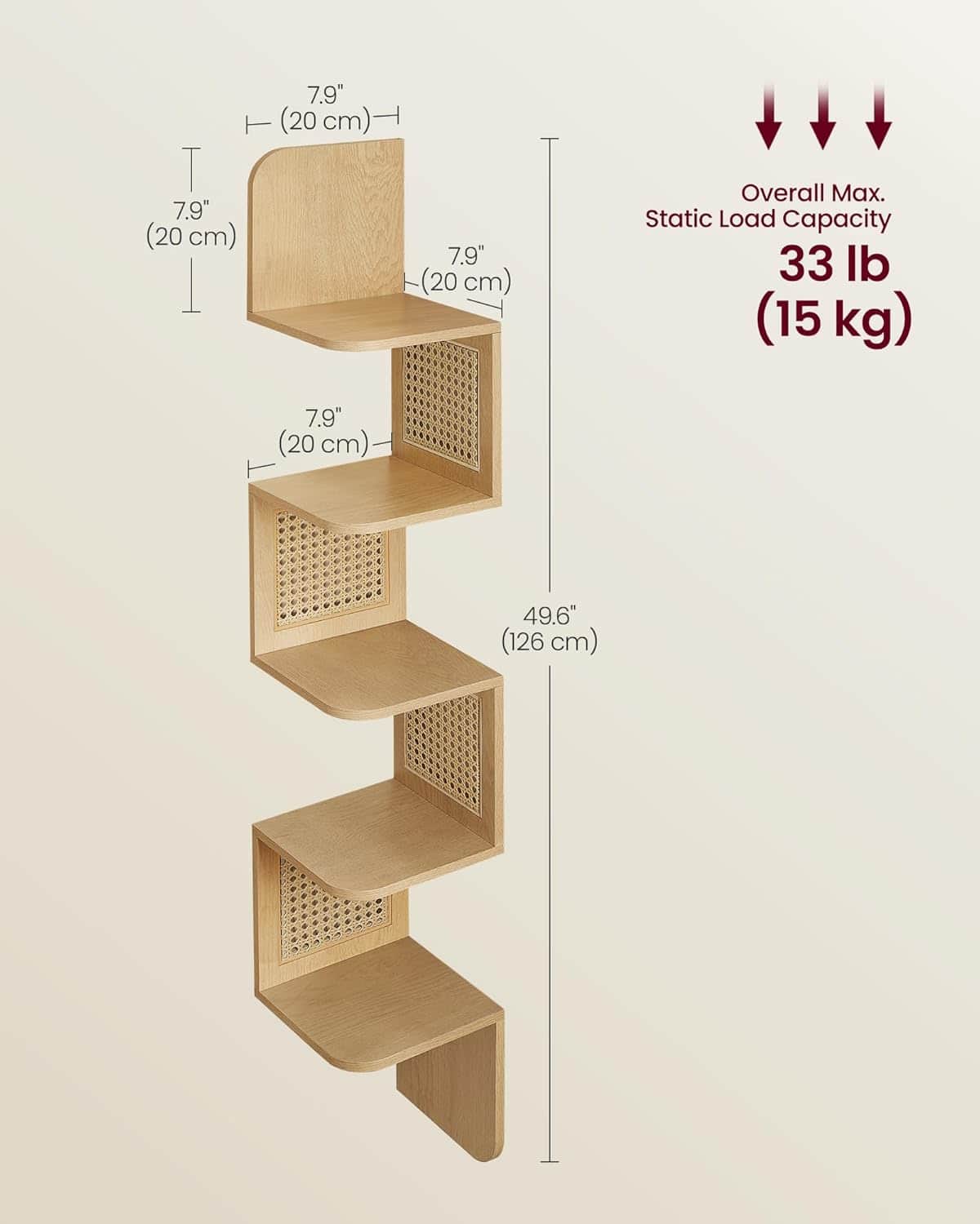 VASAGLE Raft de colt plutitor pe 5 niveluri, stil boho, 20x20x126 cm, bej Mob360