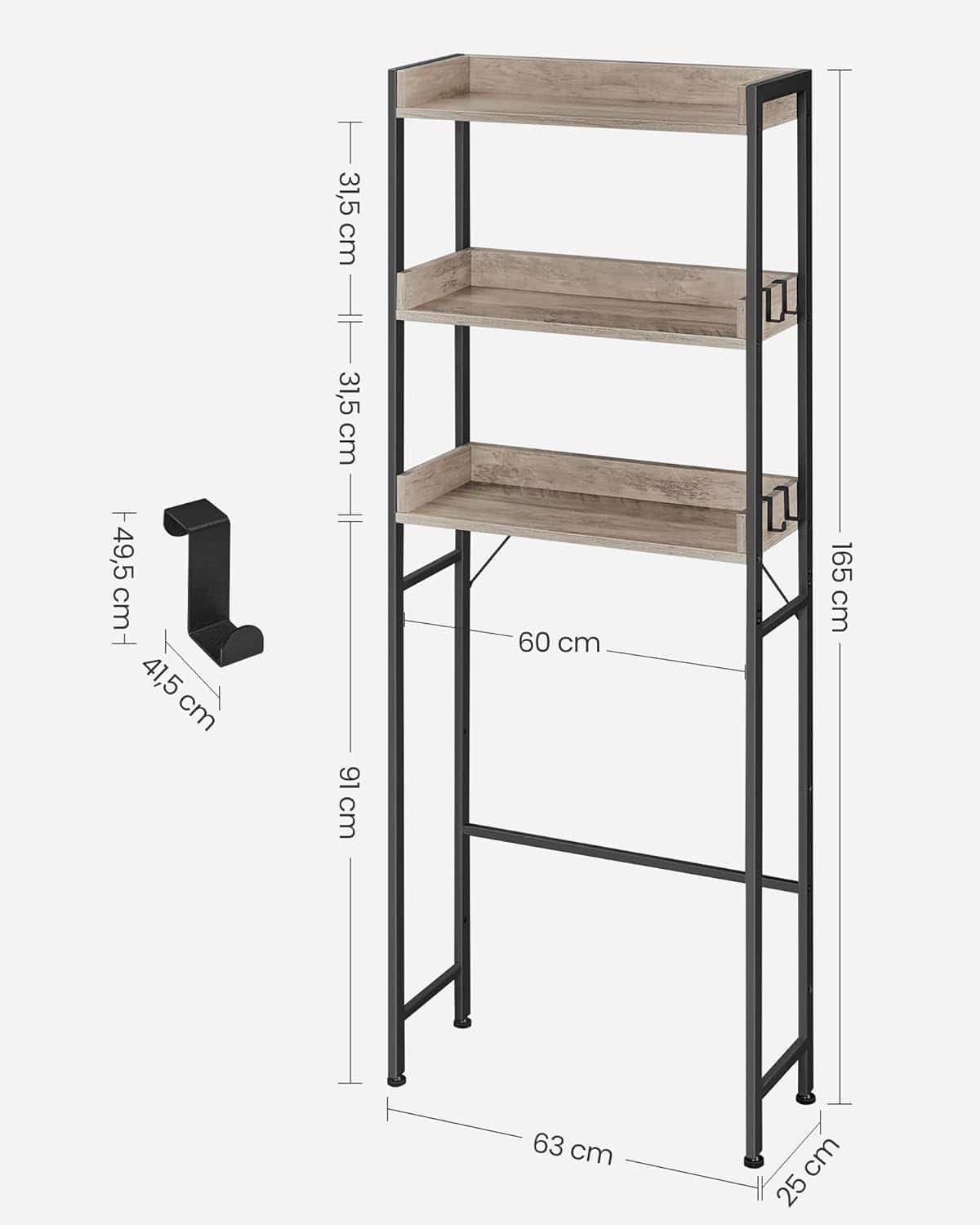 VASAGLE Raft de depozitare pentru baie, suprapunere peste masina spalat sau vas WC, 25x63x165 cm, gri Mob360 – produs disponibil în magazinul Mob360.