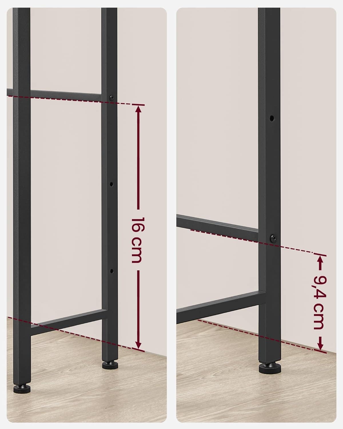 Detalii produs: Culoare: Greige-Negru Material: Pal, otel Dimensiune: 63 x 25 x 165 cm (L x l x H). Max. Capacitate de incarcare statica: 15 kg Despre acest articol Zona de deasupra toaletelor este intotdeauna atat de goala. Acoperiti-o cu acest raft pentru toaleta si maximizati spatiul de depozitare din baia dumneavoastra! Tonul cald vintage si rama neagra dau toaletei dvs. o nota unica.Extrem de practic: Detergentii la nivelul inferior, articole de igiena la mijloc si plante in partea de sus – Cele 3 rafturi ofera mult spatiu si va protejeaza obiectele esentiale din baie de cadere datorita marginilor ridicate.Nu numai pentru toaleta: Deoarece raftul inferior se afla la 91 cm de podea, iar bara inferioara este reglabila la 3 inaltimi, acest raft de baie se potriveste nu numai peste toalete, ci si peste masini de spalat cu latimea de pana la 58 cm.Acest raft de baie este alcatuit din doar cateva piese individuale, care sunt usor de asamblat datorita pieselor marcate si instructiunilor clare. Veti primi, de asemenea, o protectie la inclinare, astfel incat sa puteti fixa in siguranta raftul pe perete.