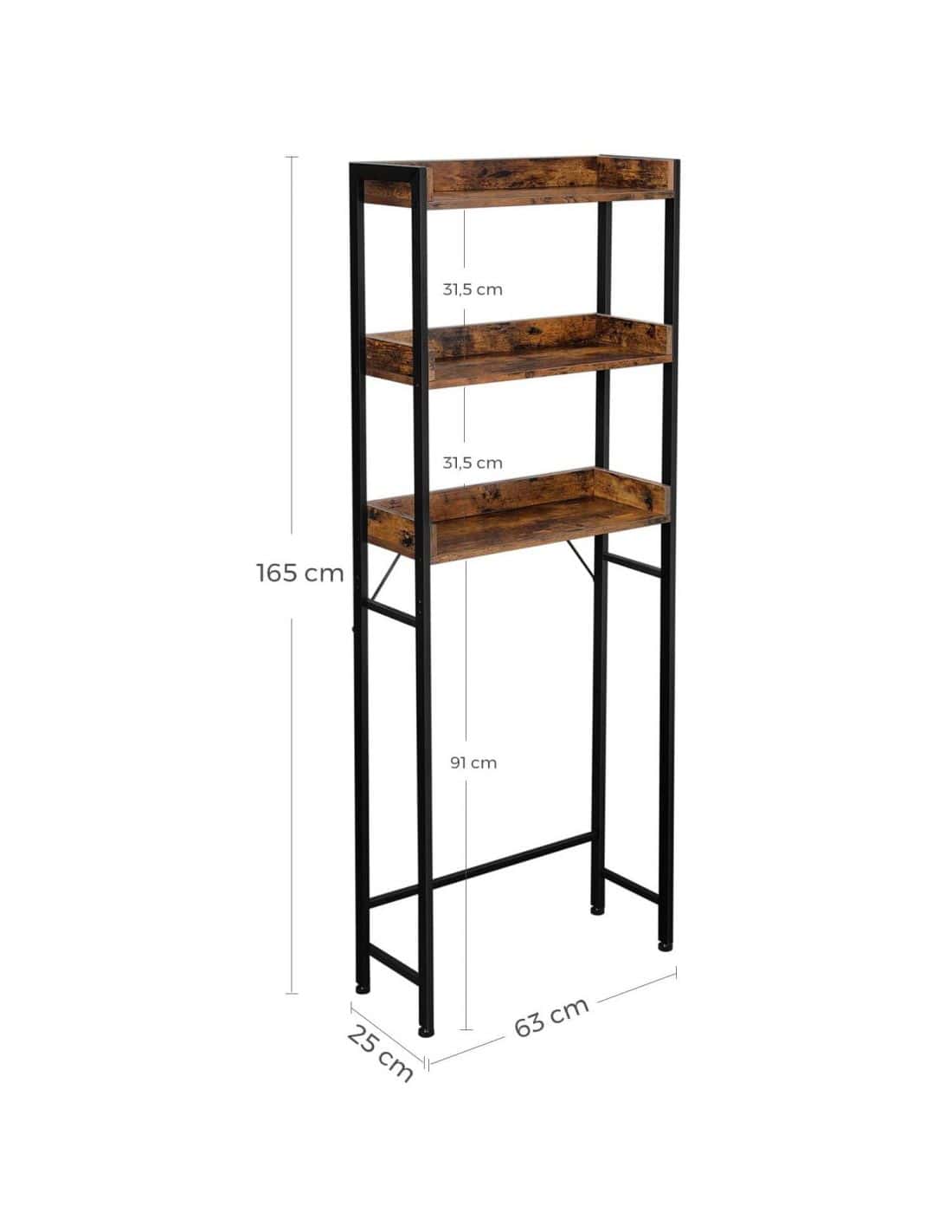 VASAGLE Raft de depozitare pentru baie, suprapunere peste masina spalat sau vas WC, 25x63x165 cm, maro Mob360