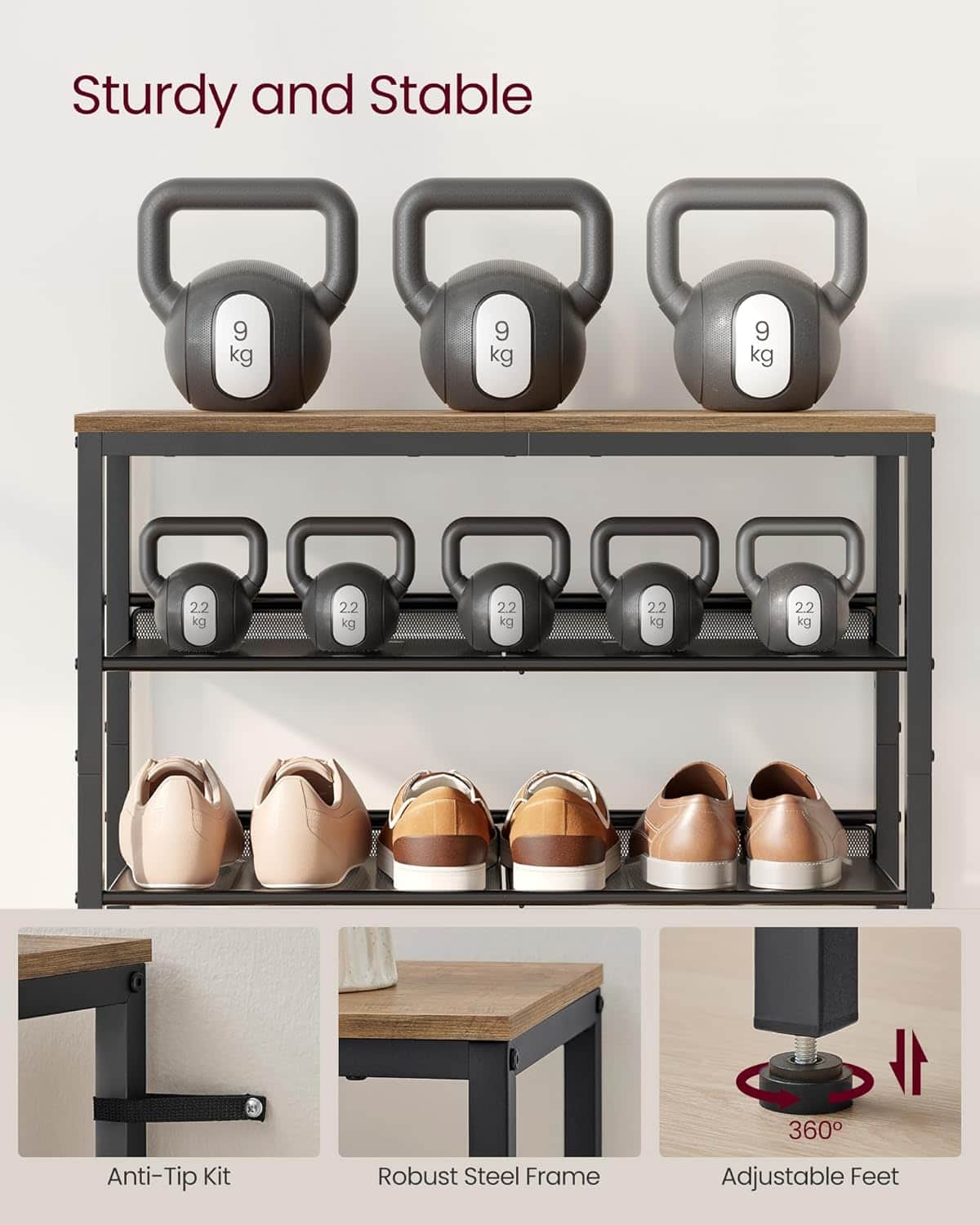 VASAGLE Raft de pantofi, 5 nivele reglabile din plasa, pentru 12-16 perechi, 75x28x93 cm, maro rustic Mob360