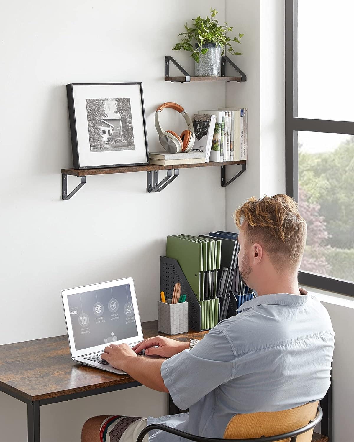 VASAGLE Raft de perete, set 3 bucati 30cm, 35cm si 40cm, 2 moduri de montare, maro rustic si negru Mob360 – produs disponibil în magazinul Mob360.