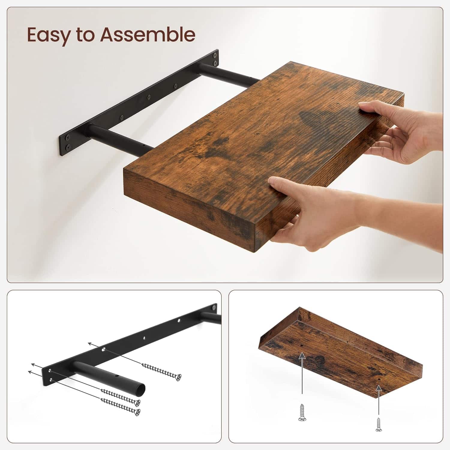 VASAGLE Raft de perete suspendat plutitor, MDF, sistem montare inclus, 40x20x4cm, vintage maro Mob360 este disponibil în magazinul Mob360.