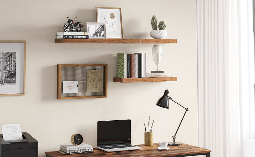 VASAGLE Raft de perete suspendat plutitor, MDF, sistem montare inclus, 80x20x4cm, vintage maro Mob360 – produs disponibil în magazinul Mob360.