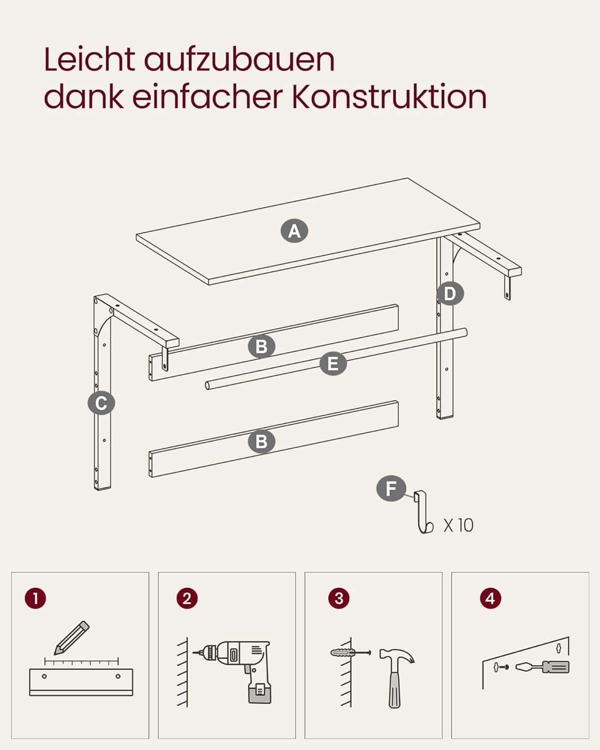 3 in 1: Cu raftul superior, carlig detasabil si tija de agatat, acest suport pentru haine de perete combina depozitarea, agatarea hainelor si depozitarea obiectelor mici intr-unul singur.