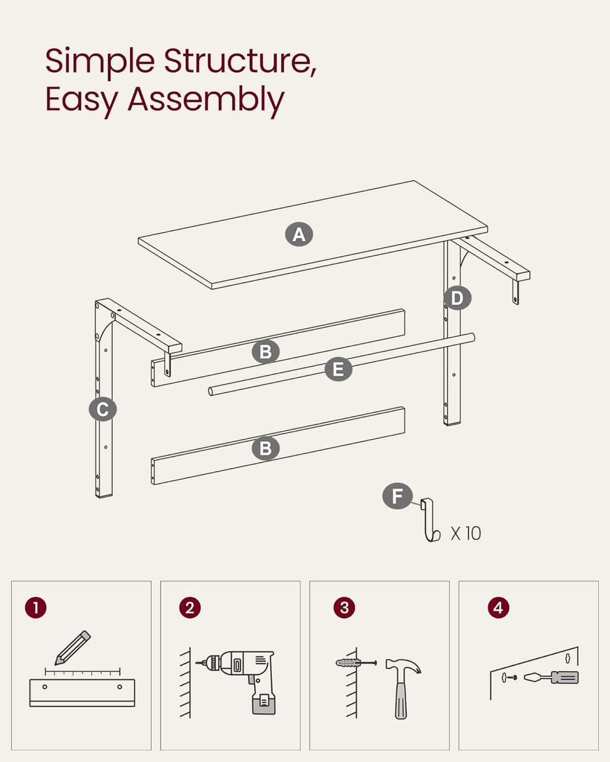 - Cuier de perete multifunctional 3 in 1, prevazut cu polita superioara, bara pentru umerase si 10 carlige detasabile dispuse pe doua randuri. Ideal pentru hol, dormitor sau baie. Finisaj modern in nuanta stejar cu alb, potrivit pentru interioare contemporane. Caracteristici principale:
