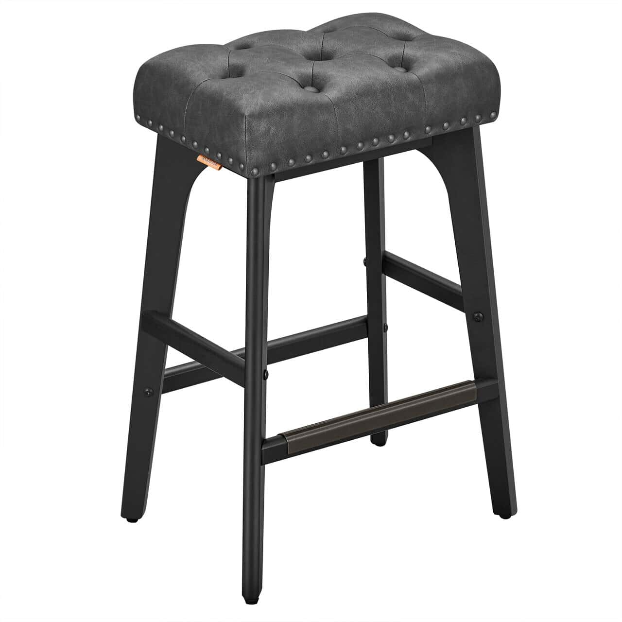 VASAGLE Set 2 scaune bar cu tapiterie piele ecologica, picioare din lemn, 44x32x66 cm, negru Mob360