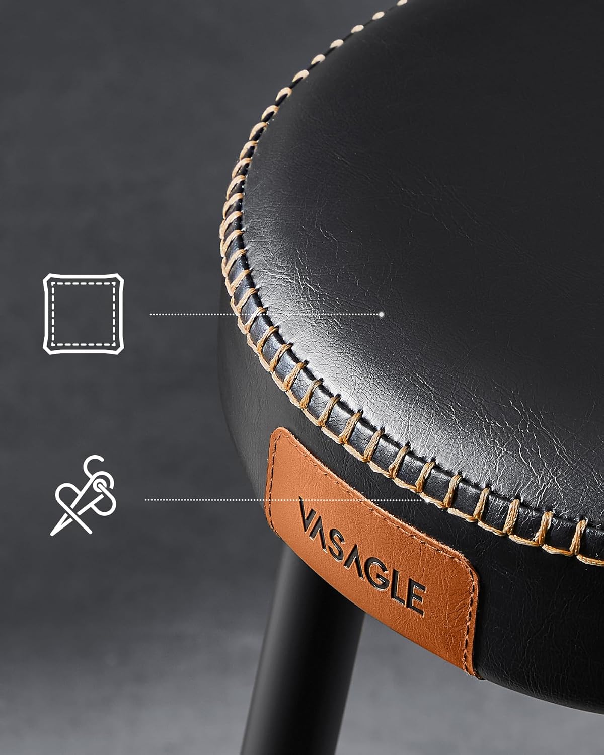 VASAGLE Set 2 scaune bar Ekho, tapitate PU, inaltime sezut 76 cm, 52×76 cm, negru Mob360 – produs disponibil în magazinul Mob360.