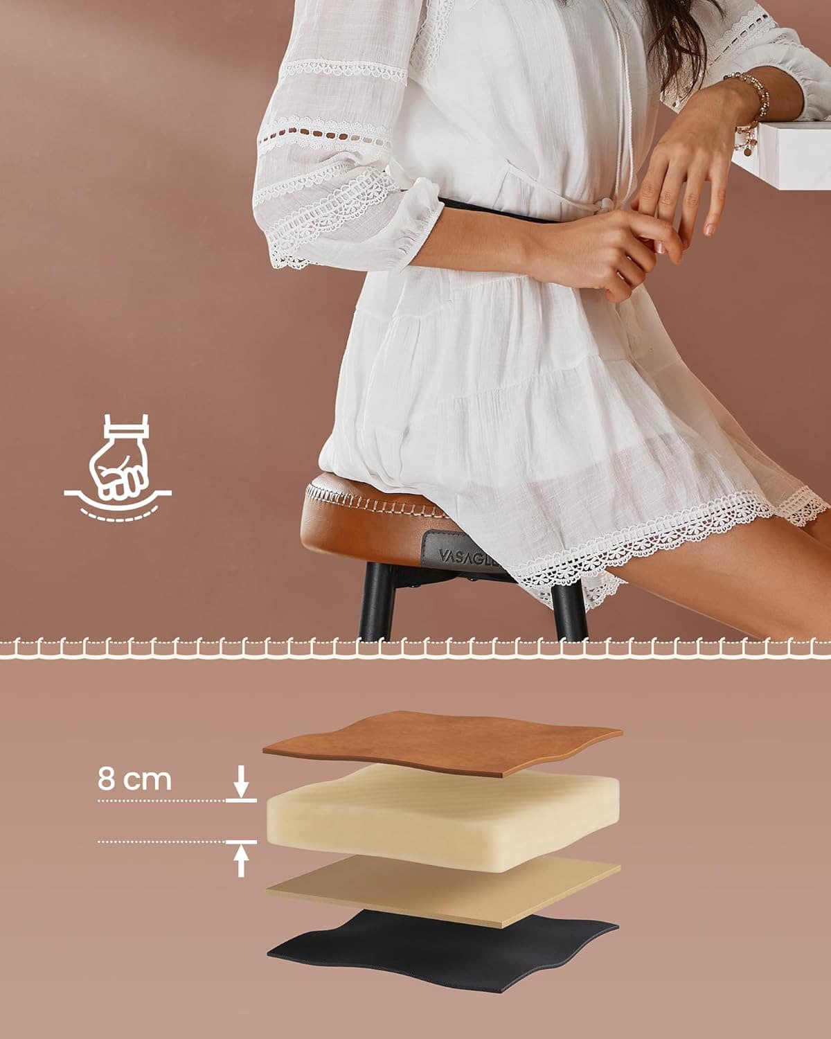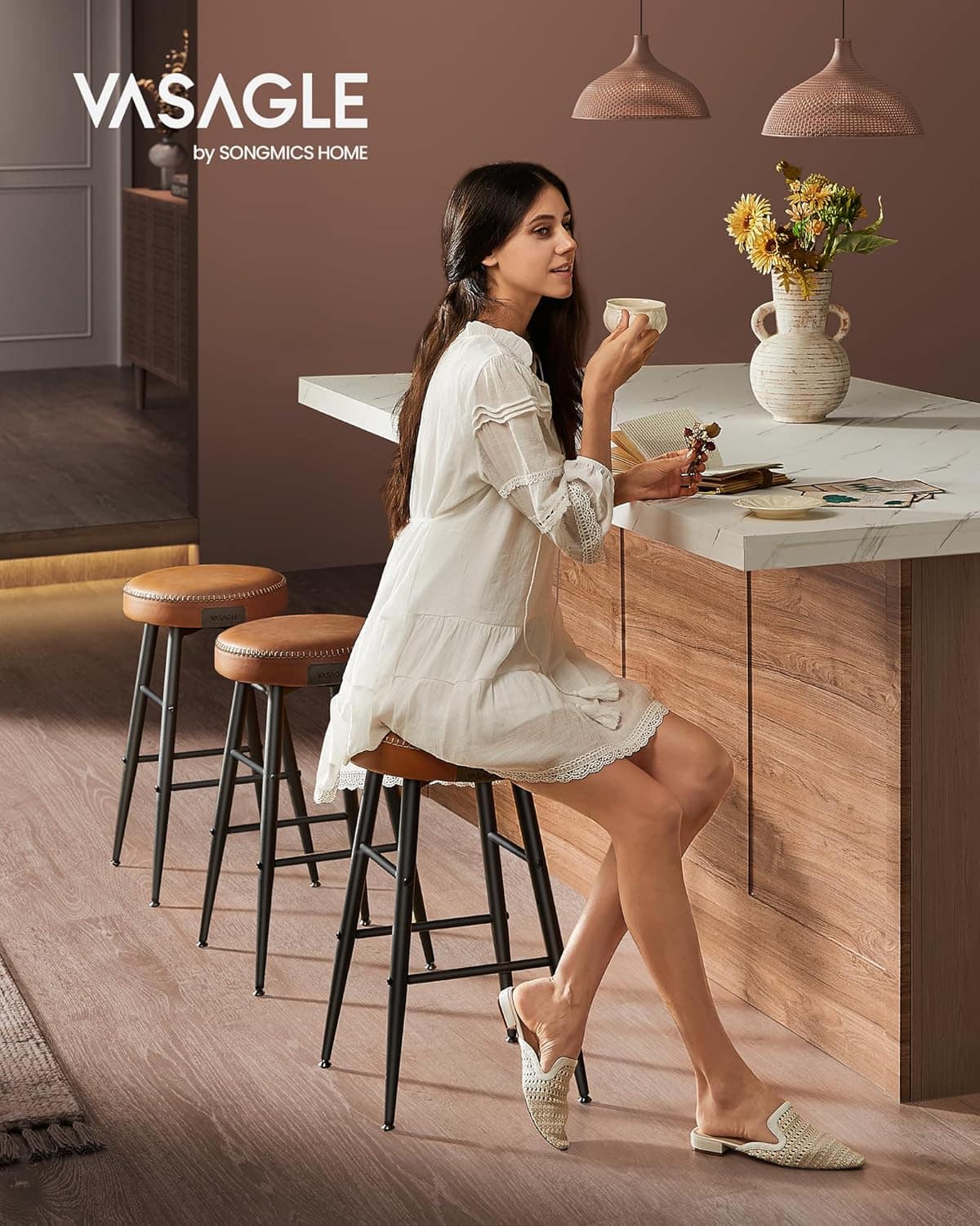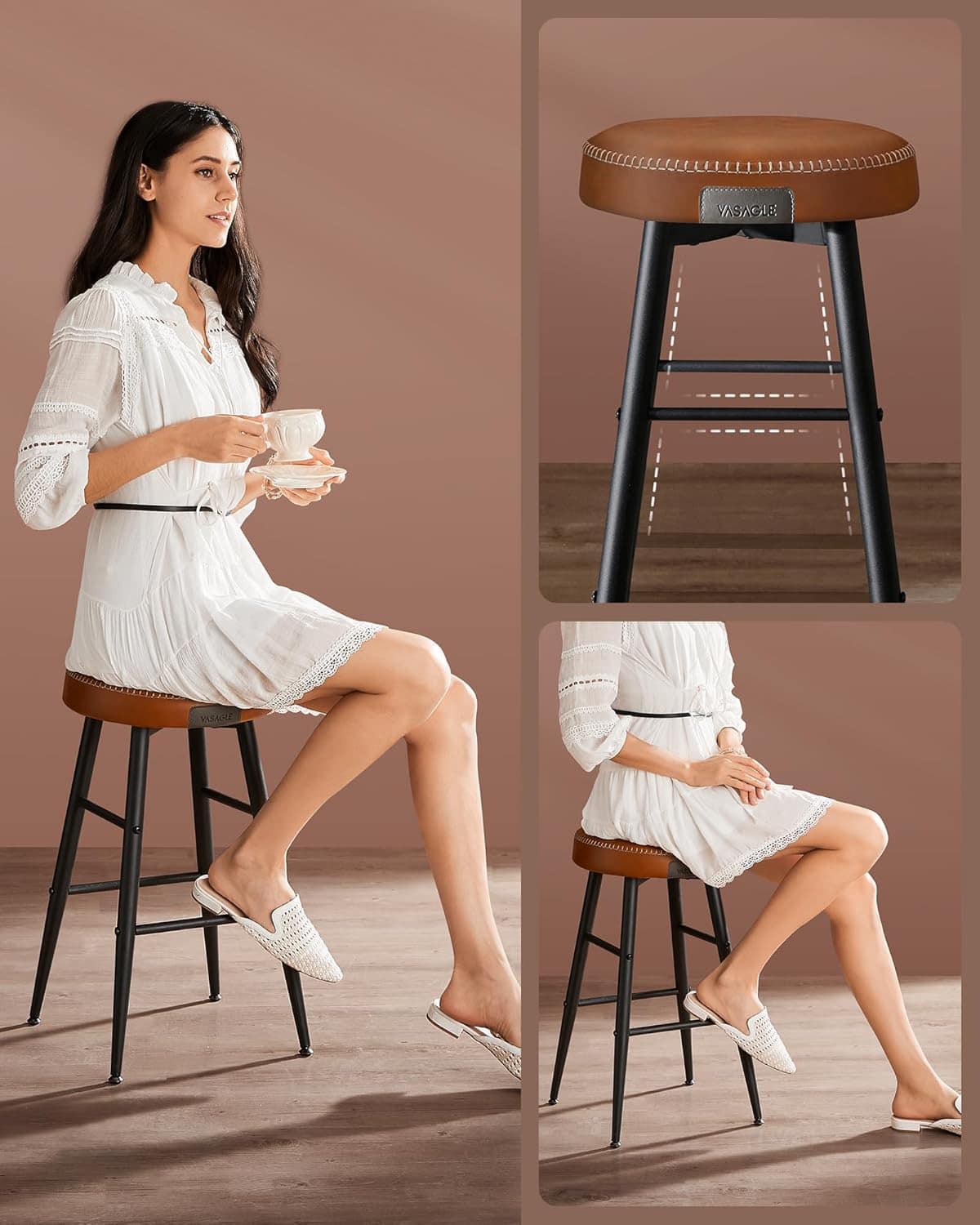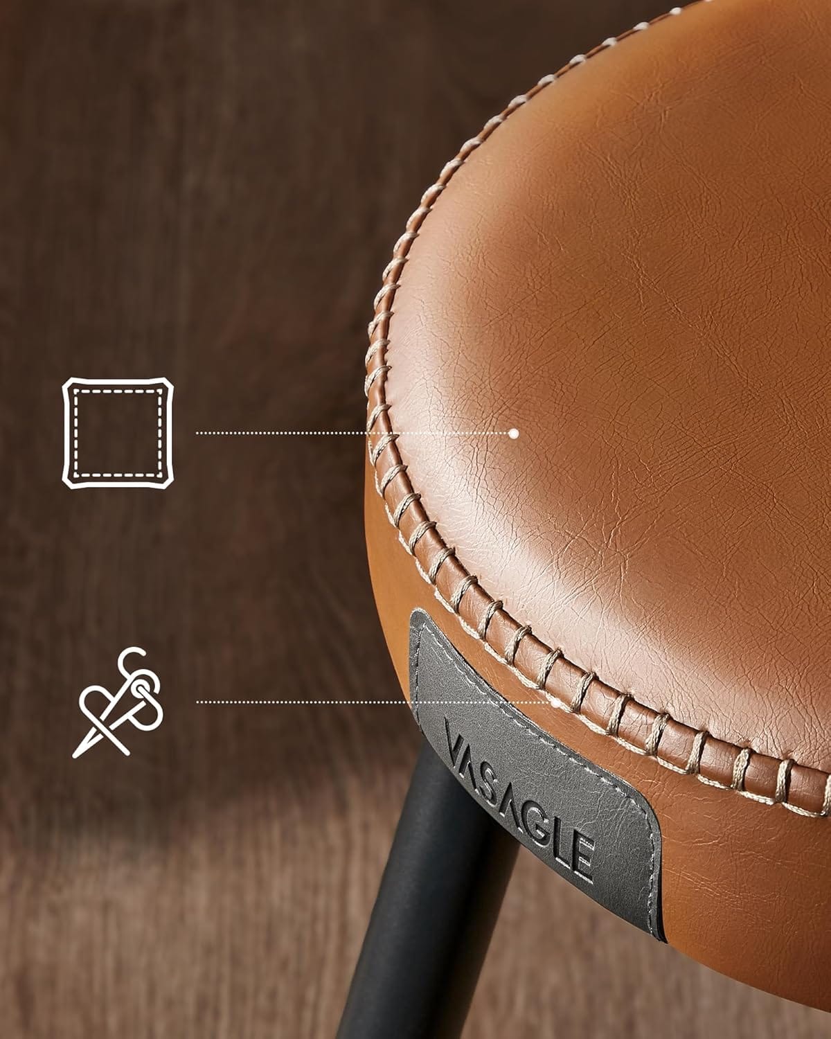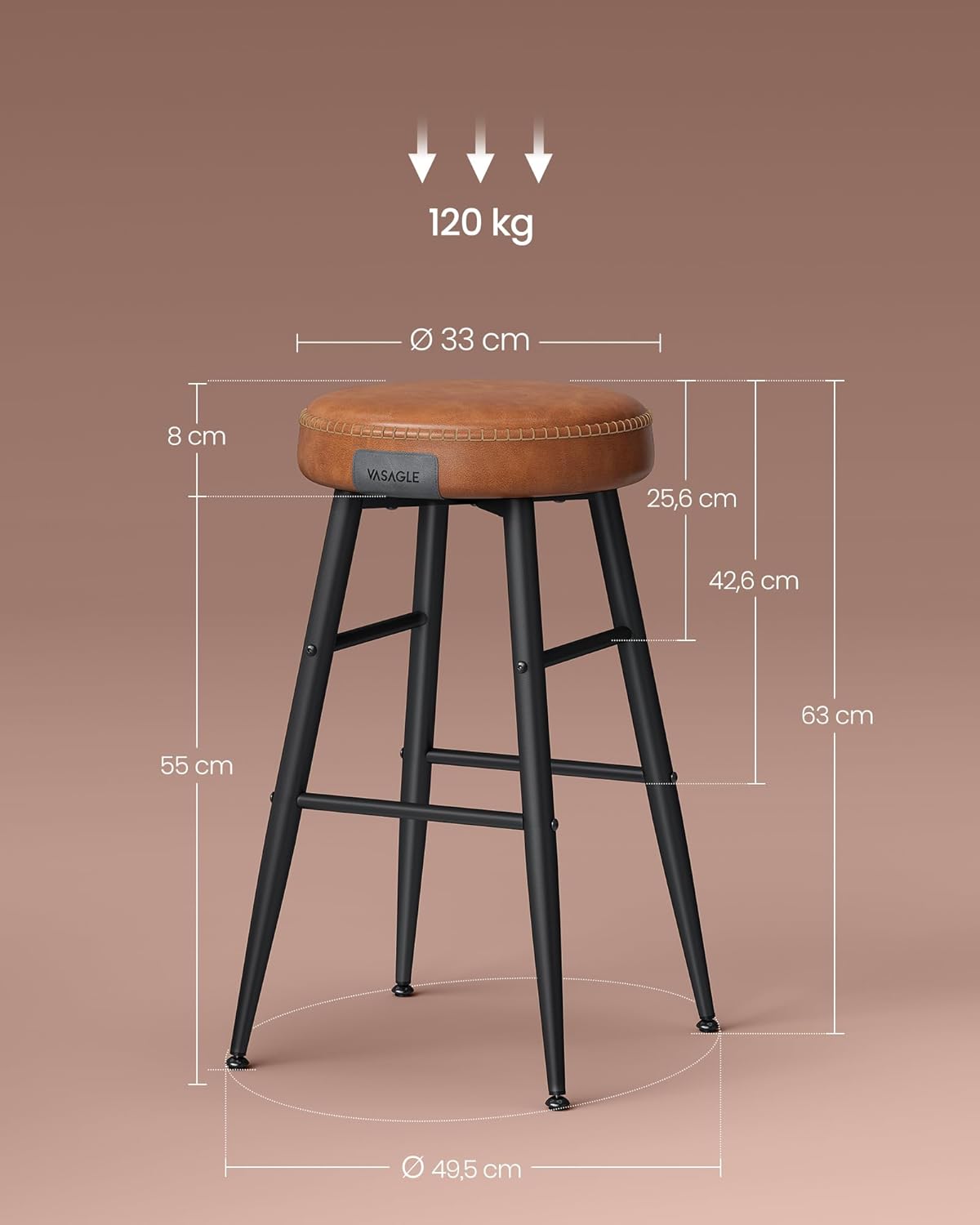 VASAGLE Set 2 scaune bar EKHO, tapiterie PU, cadru metalic, 50x50x63 cm, maro caramel Mob360