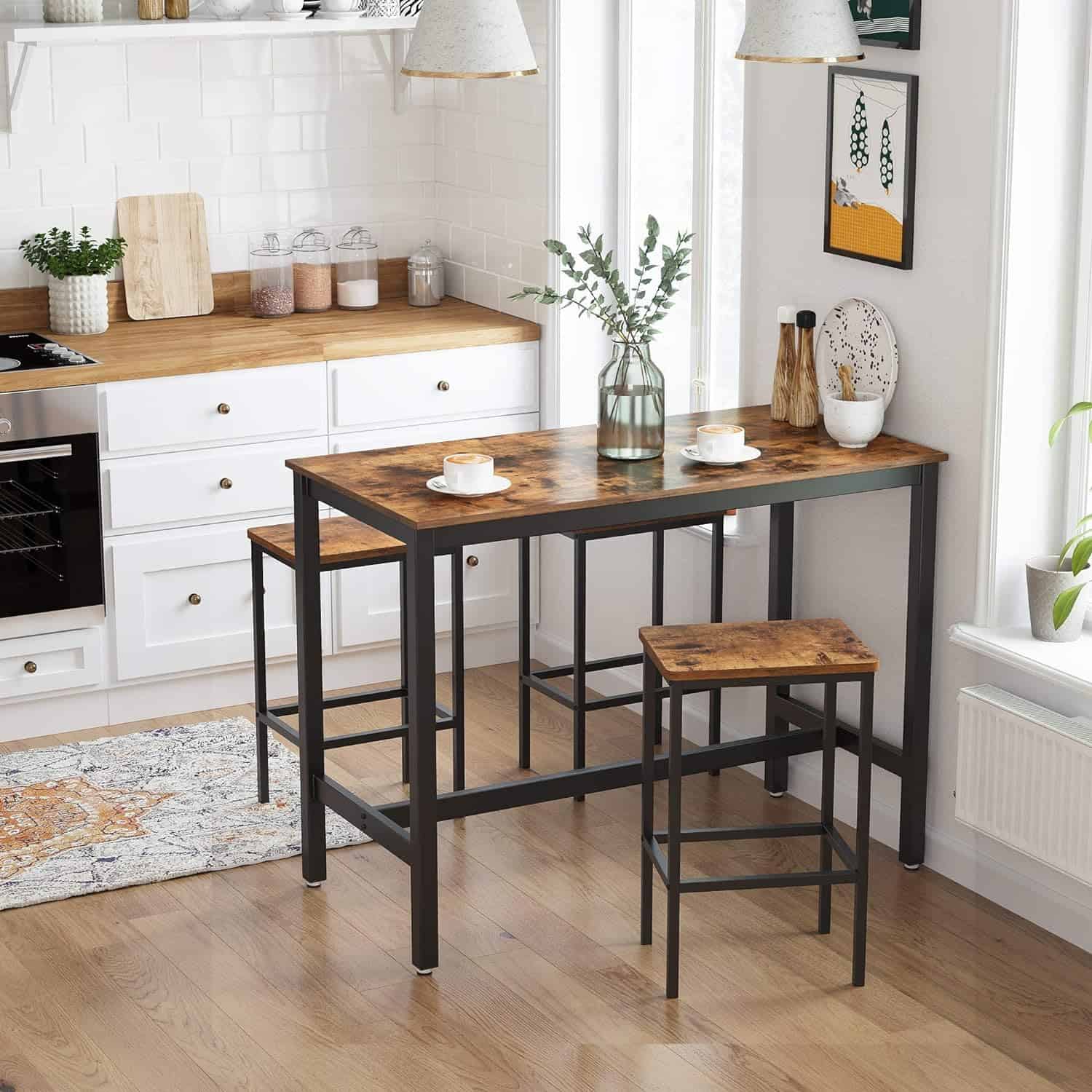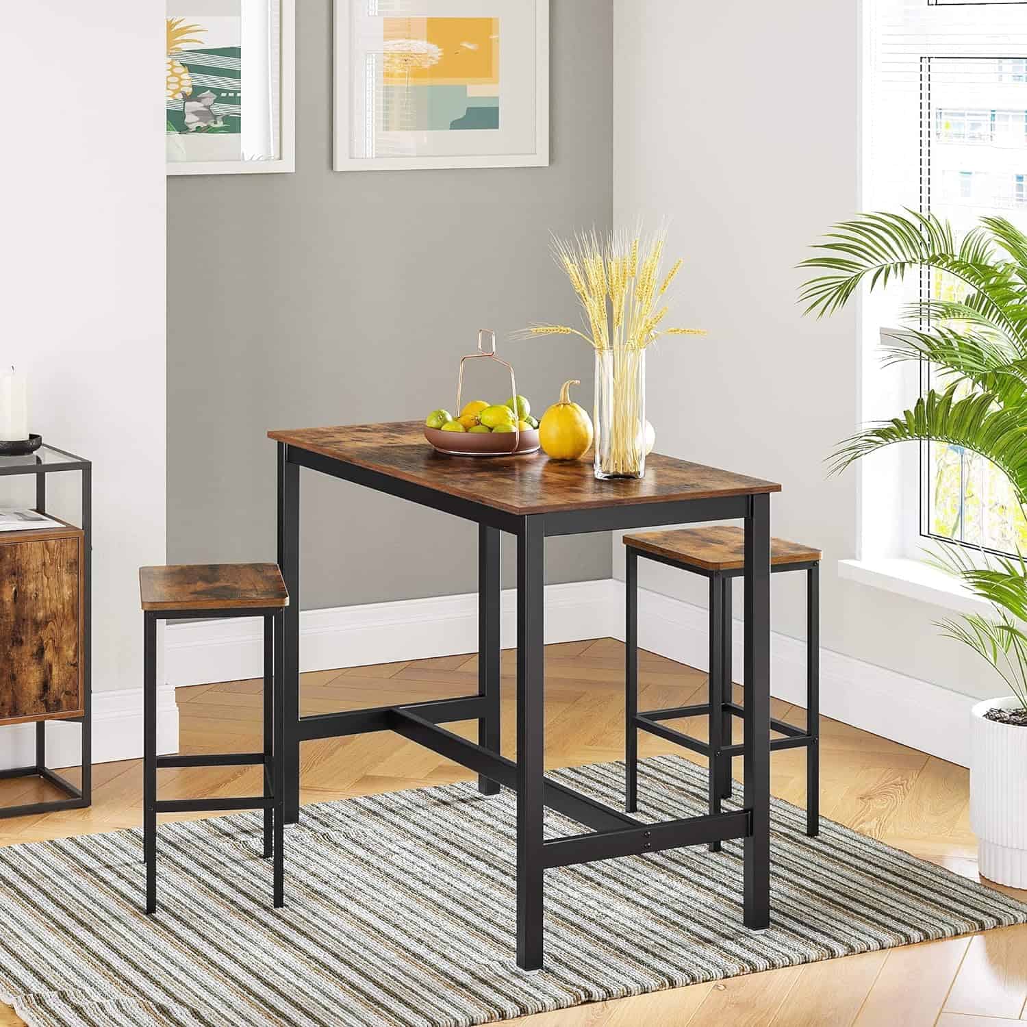 VASAGLE Set 2 scaune bar inalte, sezut dreptunghiular, cadru din otel, 40x30x65cm, stil industrial, maro rustic si negru Mob360 – produs disponibil în magazinul Mob360.