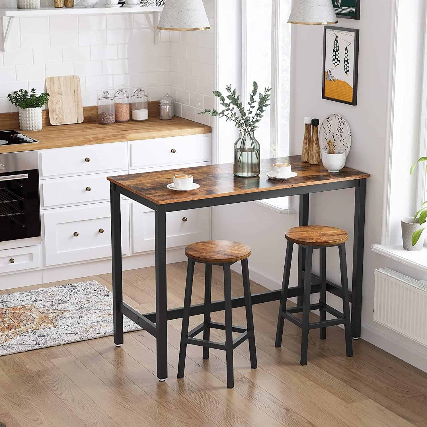 Scoateti-le doar atunci cand este servita cina!Asamblarea, floare la ureche – Aceste 2 taburete inalte au structuri simple, piese numerotate si instructiuni clare, usor de urmat, pentru o asamblare usoara in mai putin de 30 de minute!Cu scaune rotunde de culoare maro rustic si un cadru din otel negru mat, stilul industrial al acestor taburete de bar adauga caracter bucatariei dvs.