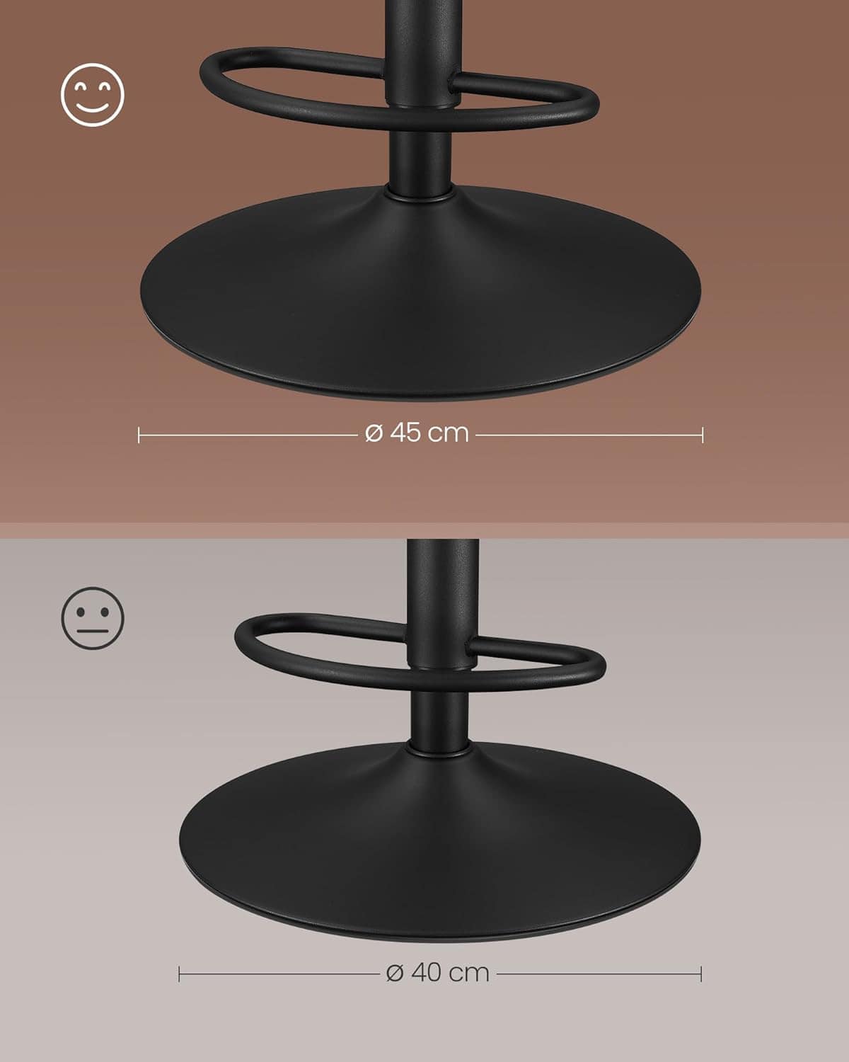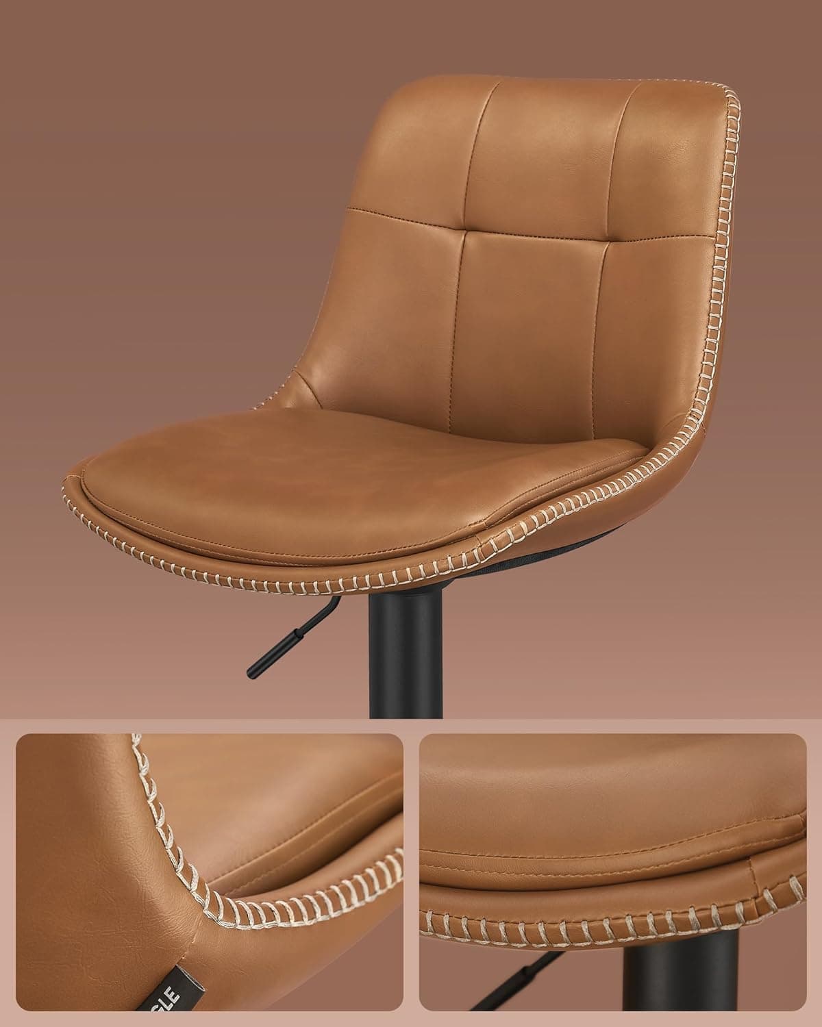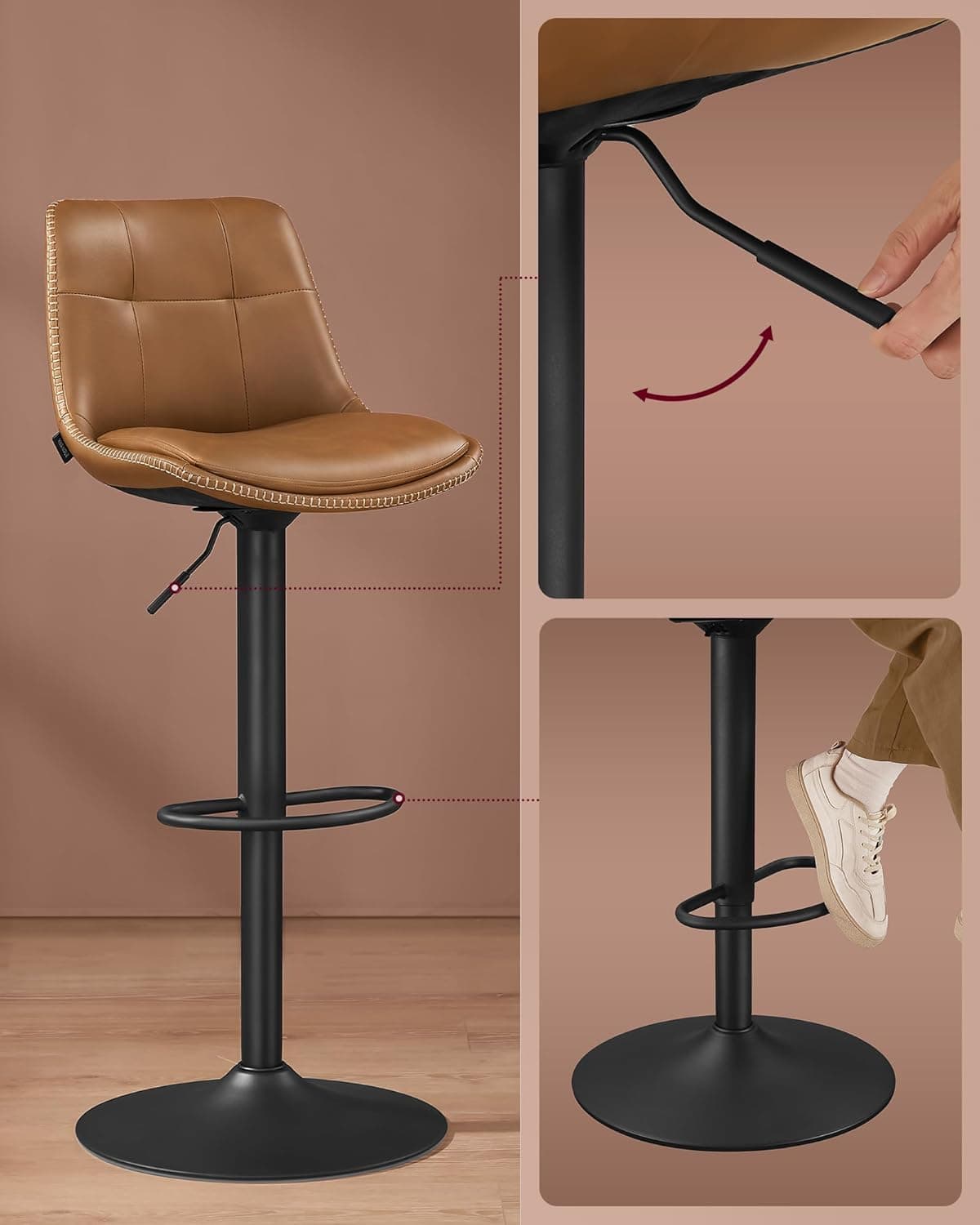 VASAGLE Set 2 scaune bar reglabile, rotative 360°, tapiterie PU, cadru metalic, 44x30x90-112 cm, maro caramel Mob360