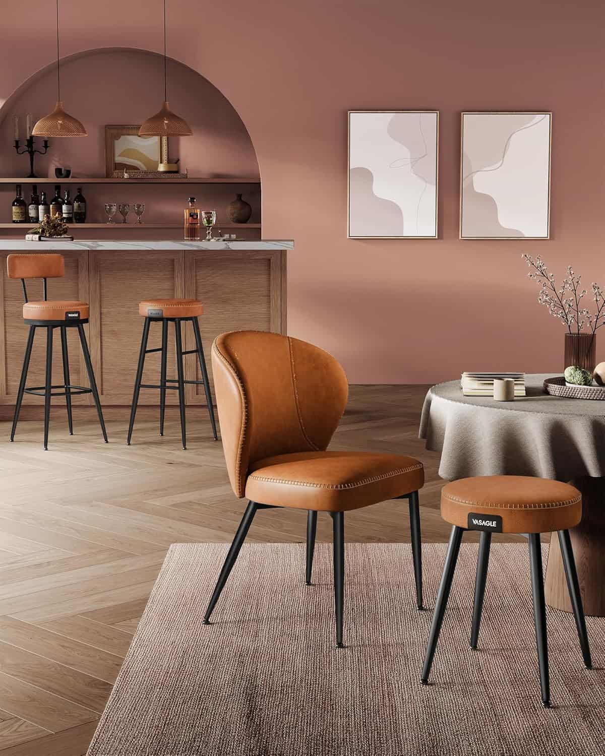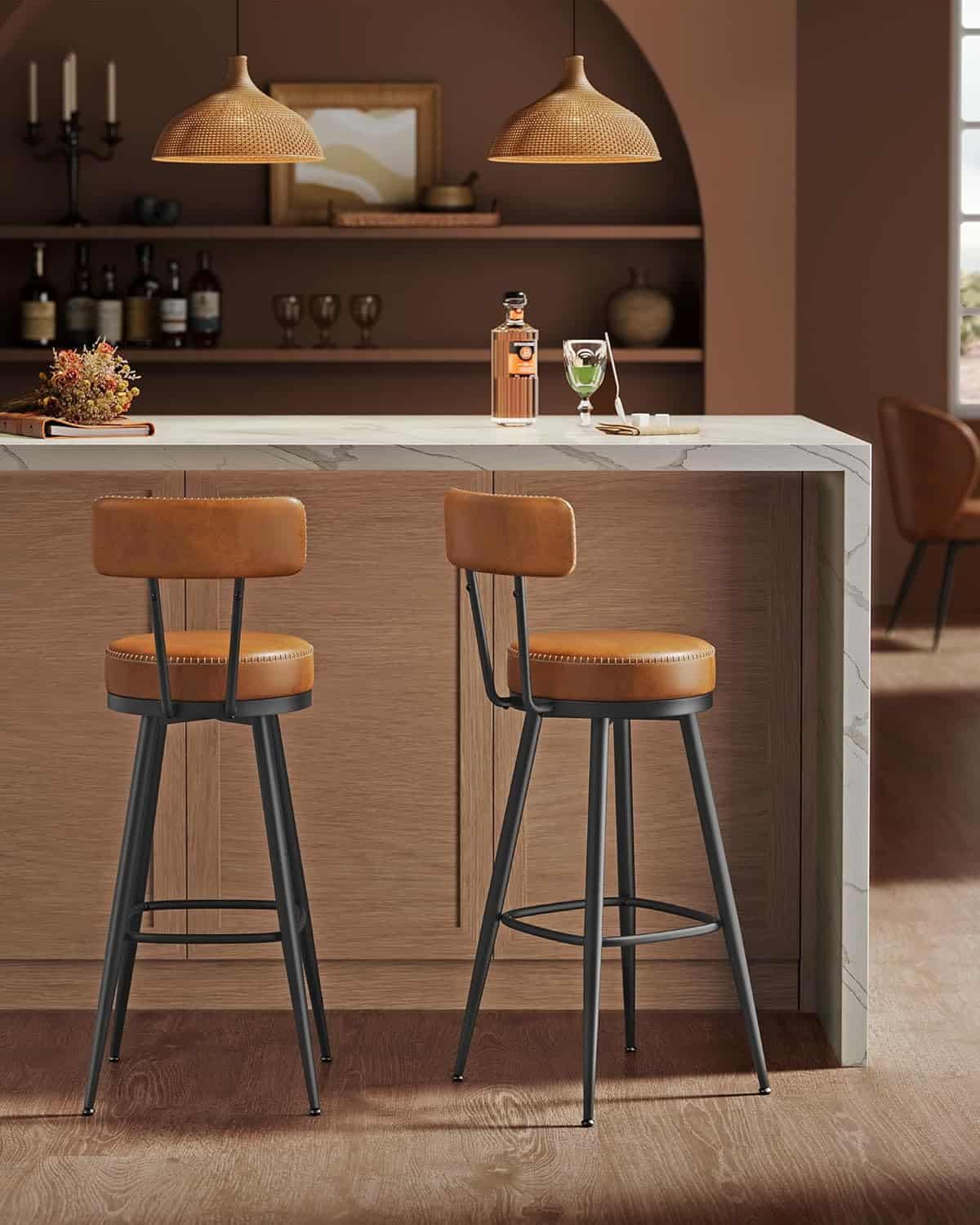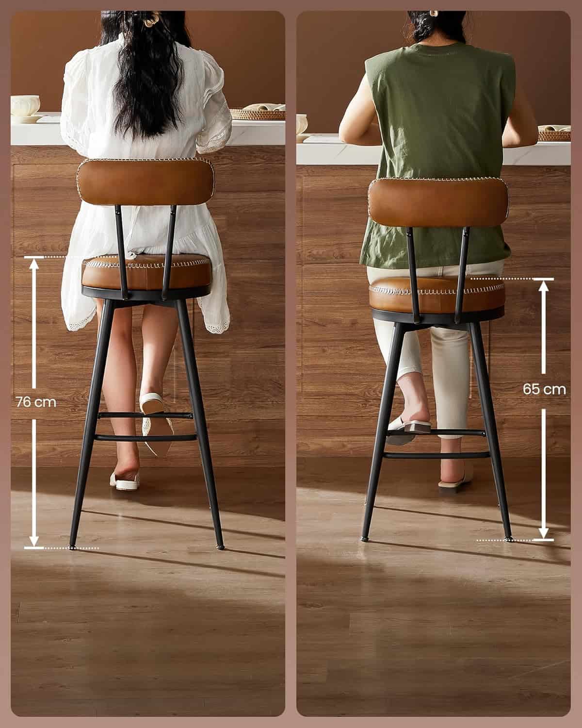 VASAGLE set 2 scaune de bar rotative 360°, cu spatar, inaltime 101 cm, piele sintetica, cadru otel, stil modern, maro Mob360