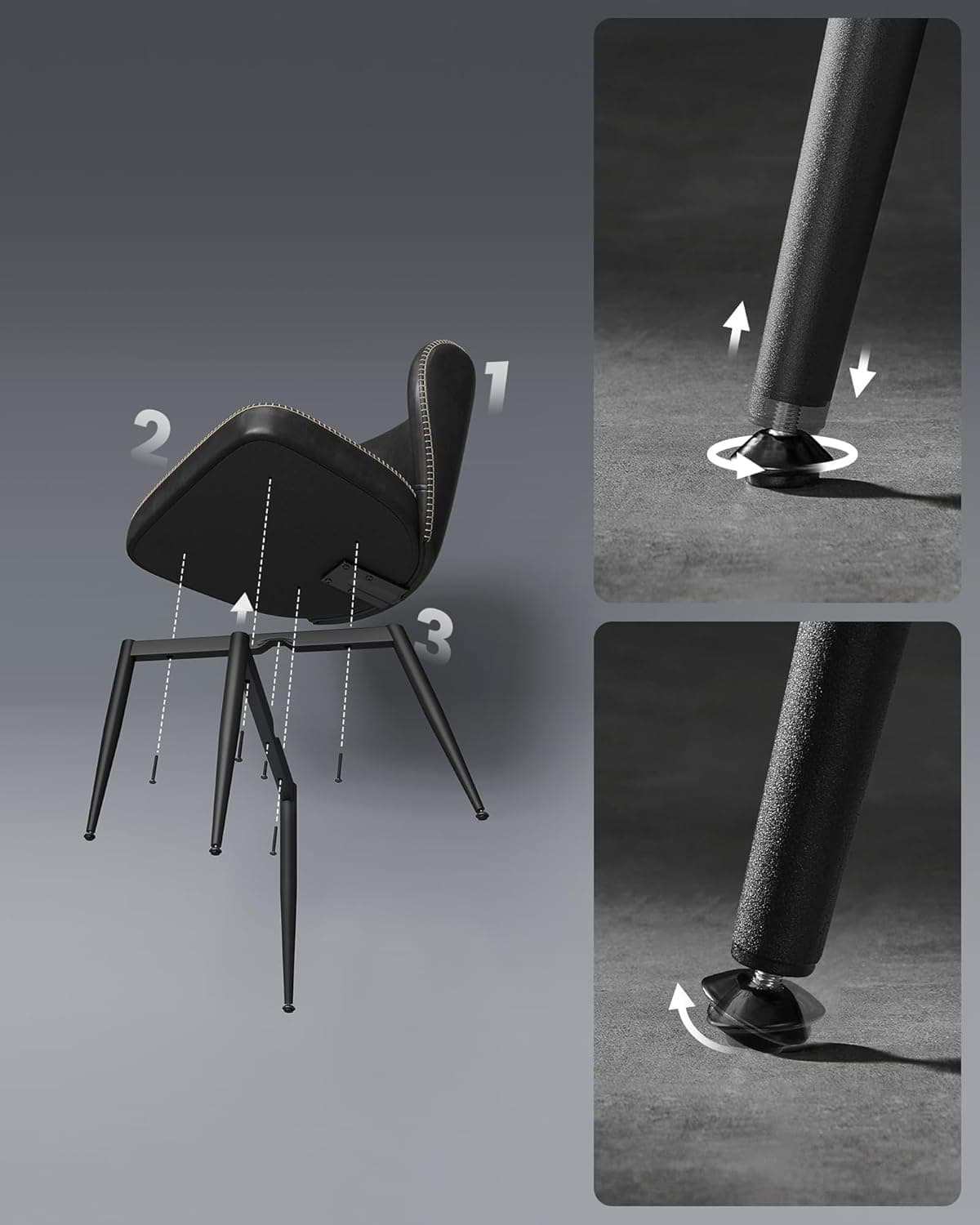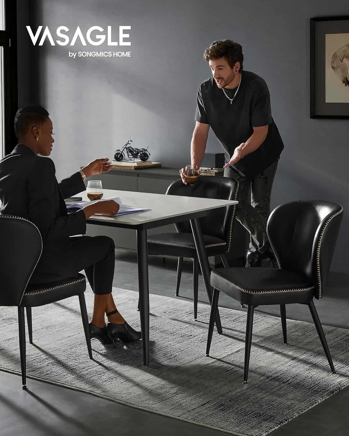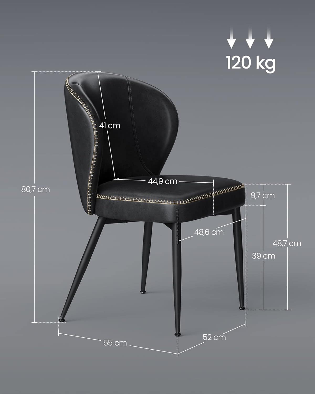 VASAGLE Set 2 scaune living EKHO, tapiterie piele ecologica cu cusaturi, 52x55x79 cm, negru Mob360