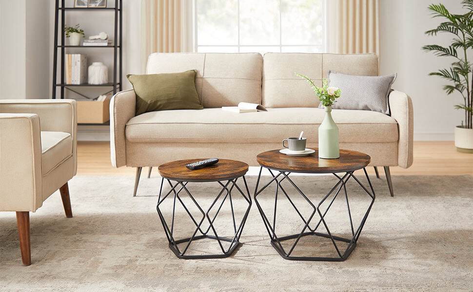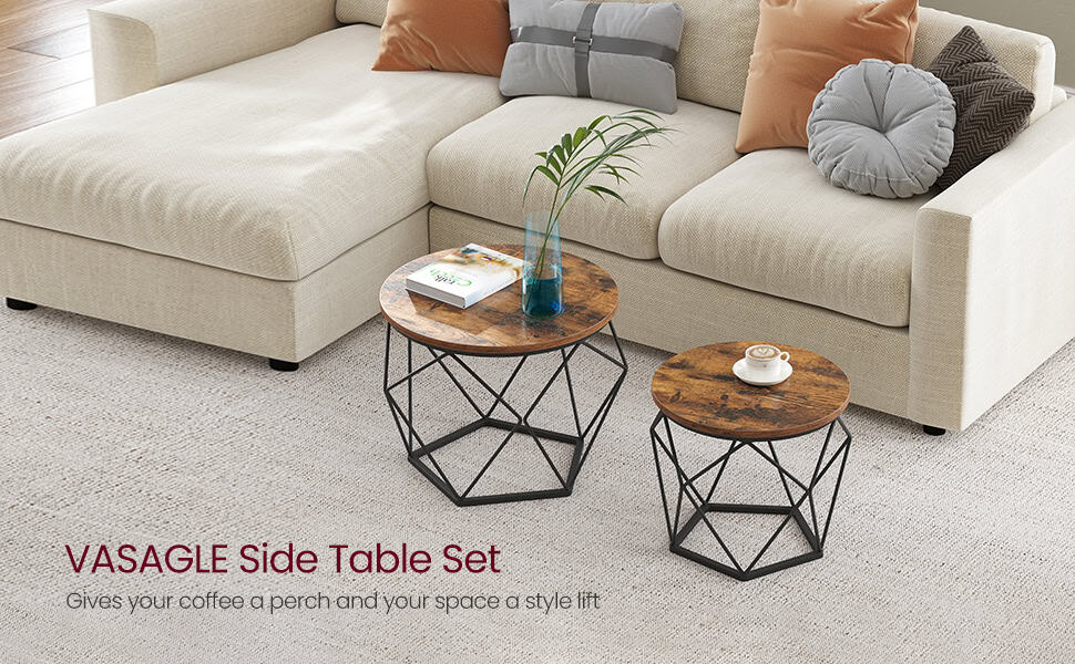 VASAGLE Set de 2 mese de cafea, stil industrial, 50x40cm si 40x36cm, maro rustic si negru Mob360 – produs disponibil în magazinul Mob360.