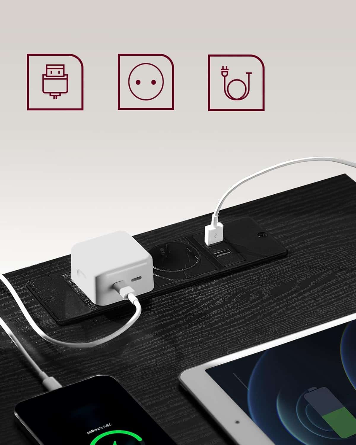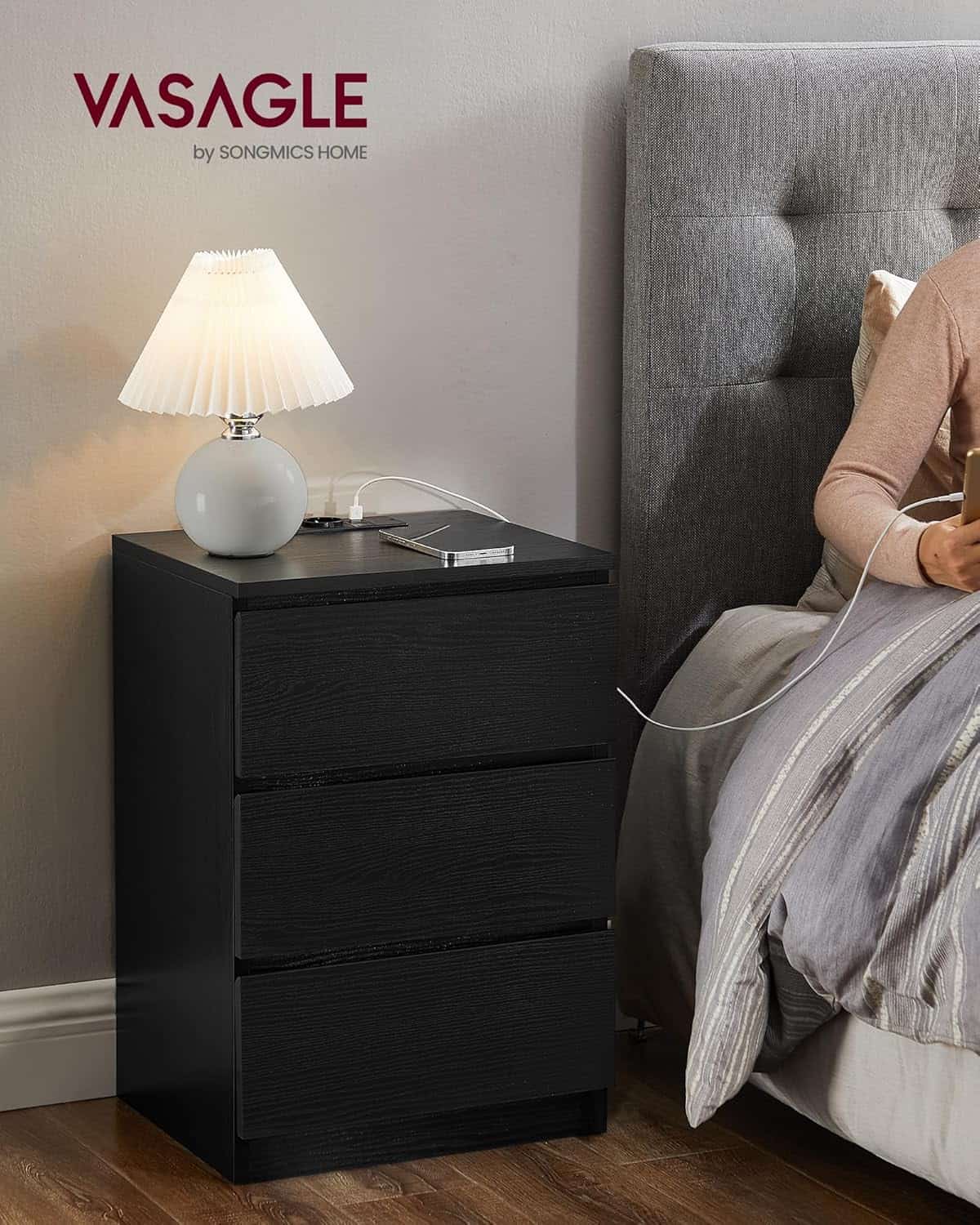 VASAGLE Set de 2 noptiere, cu sertare, 2 prize si 2 USB, 35x40x59 cm, negru Mob360 – produs disponibil în magazinul Mob360.