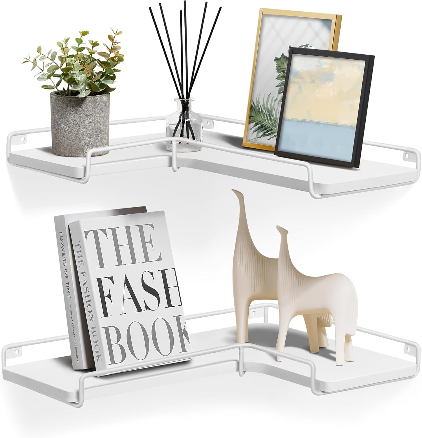 VASAGLE Set de 2 rafturi plutitoare de colt in forma de L, stil industrial, 40x29x14cm, alb Mob360
