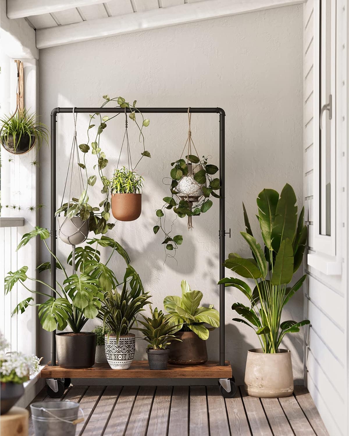 VASAGLE Suport haine cu bara metalica si raft inferior, cadru metalic si PAL, stil industrial, 104x40x162 cm, maro rustic si negru Mob360