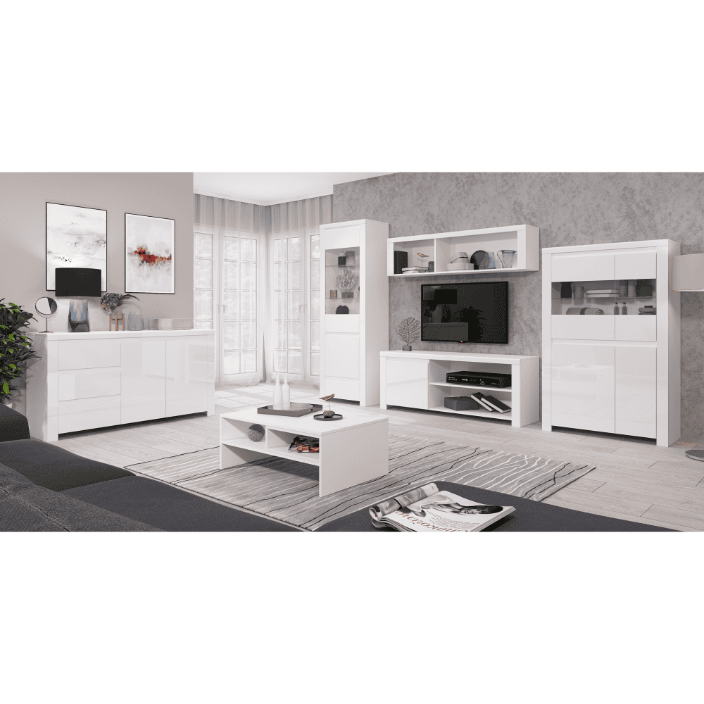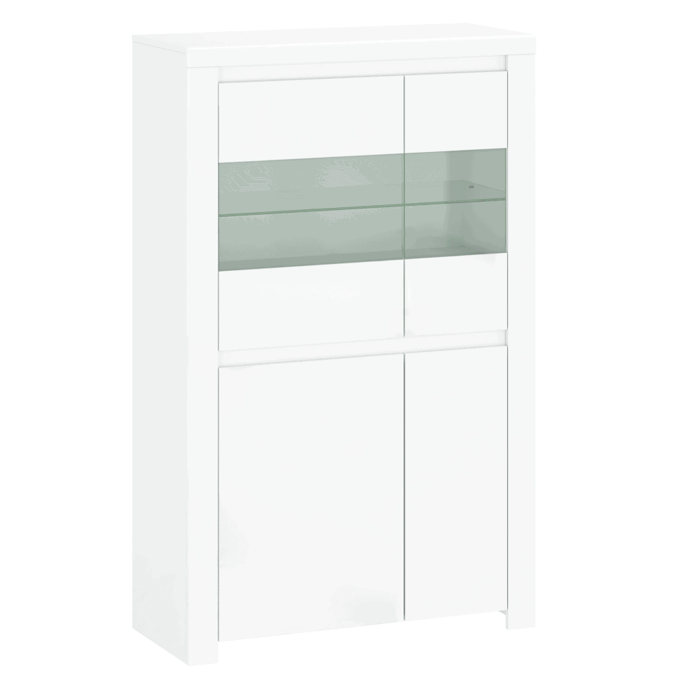 Vitrină 2D2W, alb lucios, LINDY